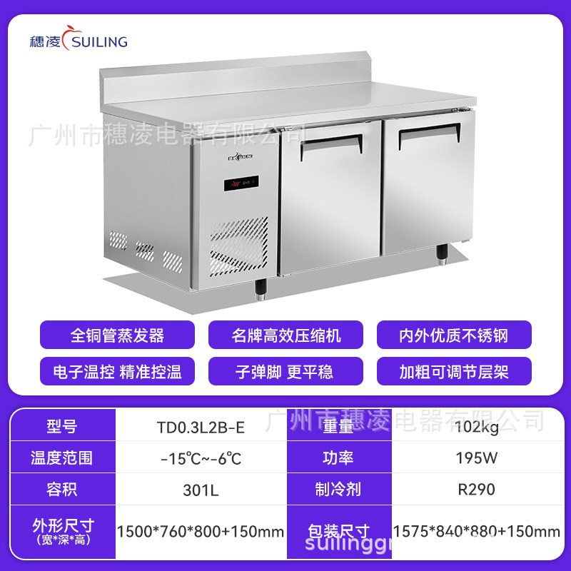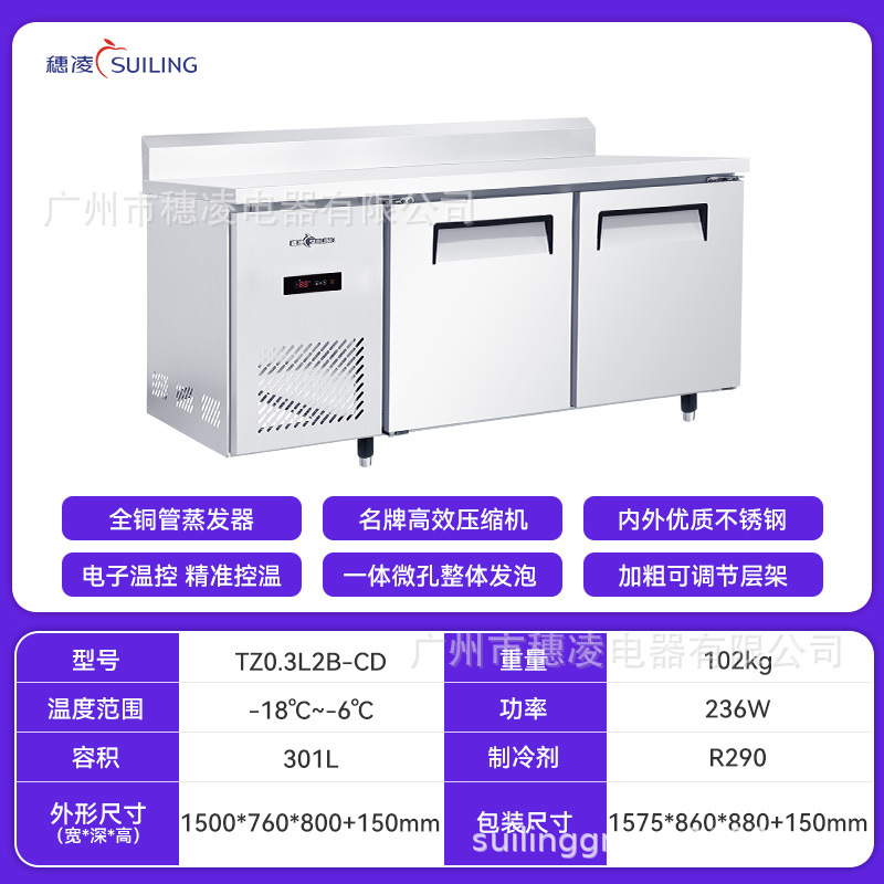 Suiling 스팟 냉동고 상업용 냉동고 냉장 신선 유지 냉장고 작업대 스테인레스 스틸 데스크탑 냉동고 소스 공장스토어 가기