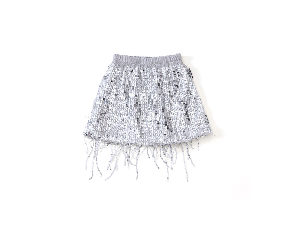 MDD 어린이 쇼트 스커트 2025 여름 새 여아 퍼포먼스 Sequin Tassed 스커트 아기 소녀 스타일 스커트스토어 가기