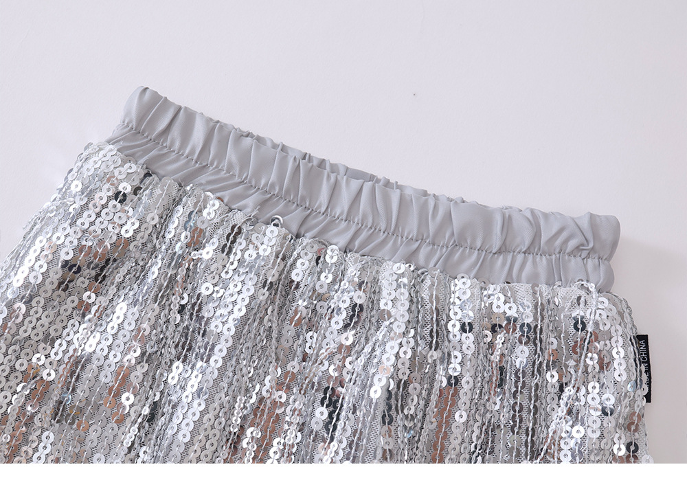 此款因为面料为亮片串连工艺,收到货和穿着时会有少量亮片掉落情况,不可机洗!介意慎拍!