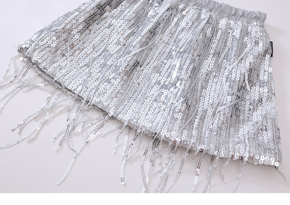 MDD 어린이 쇼트 스커트 2025 여름 새 여아 퍼포먼스 Sequin Tassed 스커트 아기 소녀 스타일 스커트