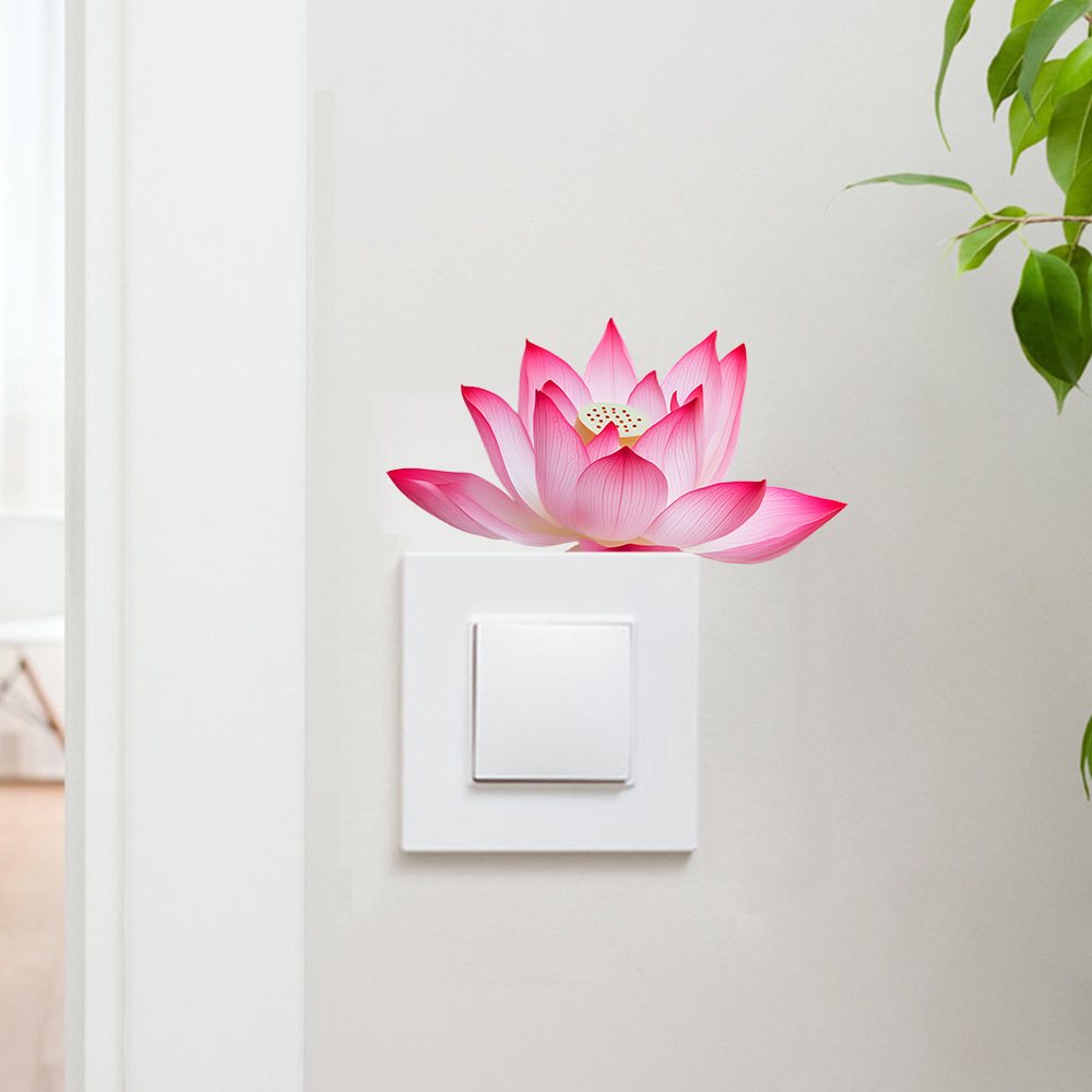 Fun-kg163 간단한 수채화 연꽃 침실 거실 스위치 스티커 홈 배경 미화 벽 스티커스토어 가기