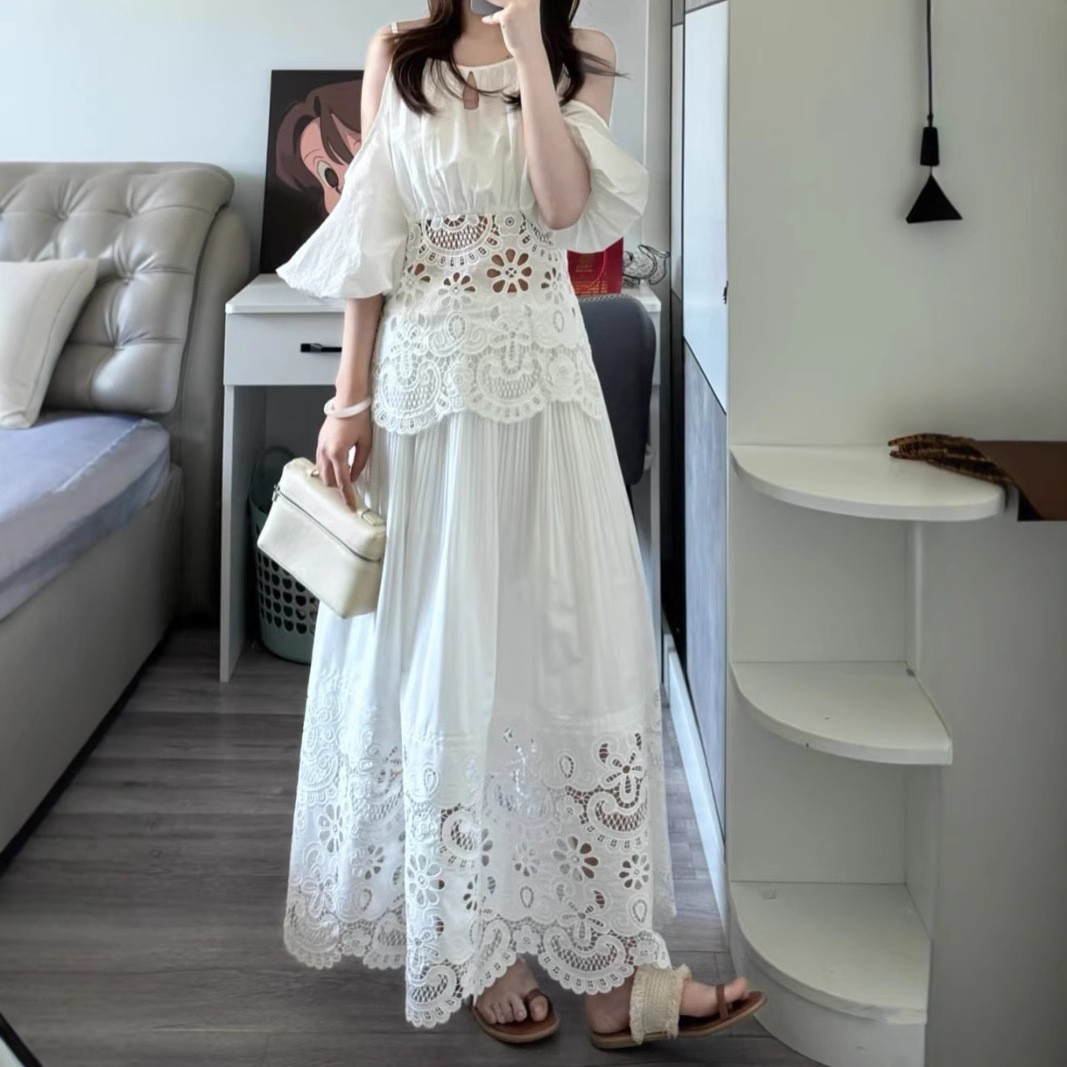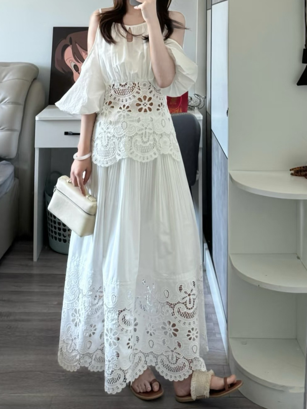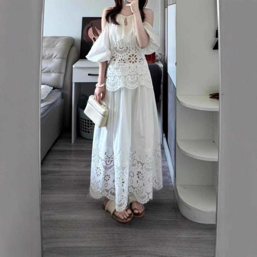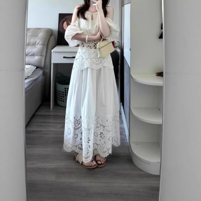 Zhang 'SS 같은 스타일 Nanyou 시니어 세트 25 여름 "꽃과 아름다움" 레이스 할로우 탑 스커트