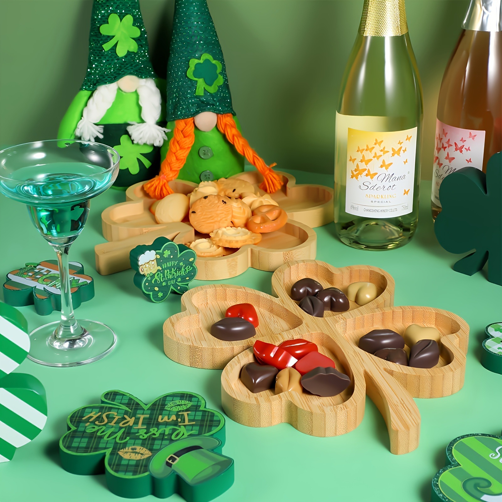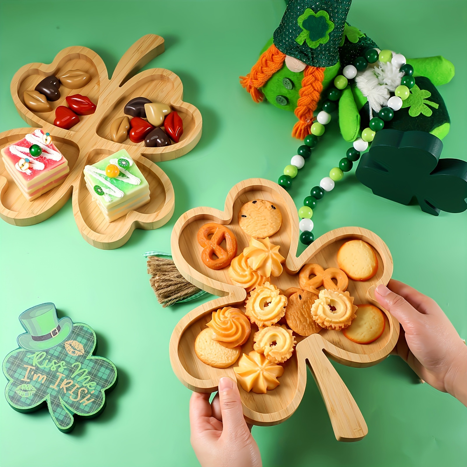 크리 에이 티브 단단한 나무 네잎 클로버 트레이 레스토랑 손잡이가있는 나무 과자 트레이 가정용 나무 과일 스낵 트레이스토어 가기