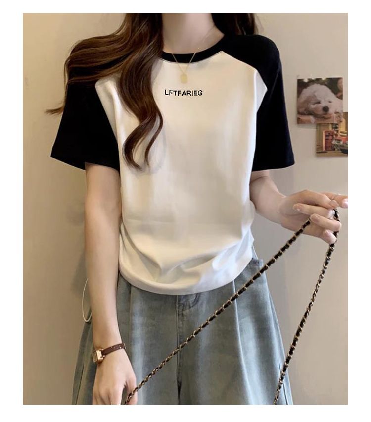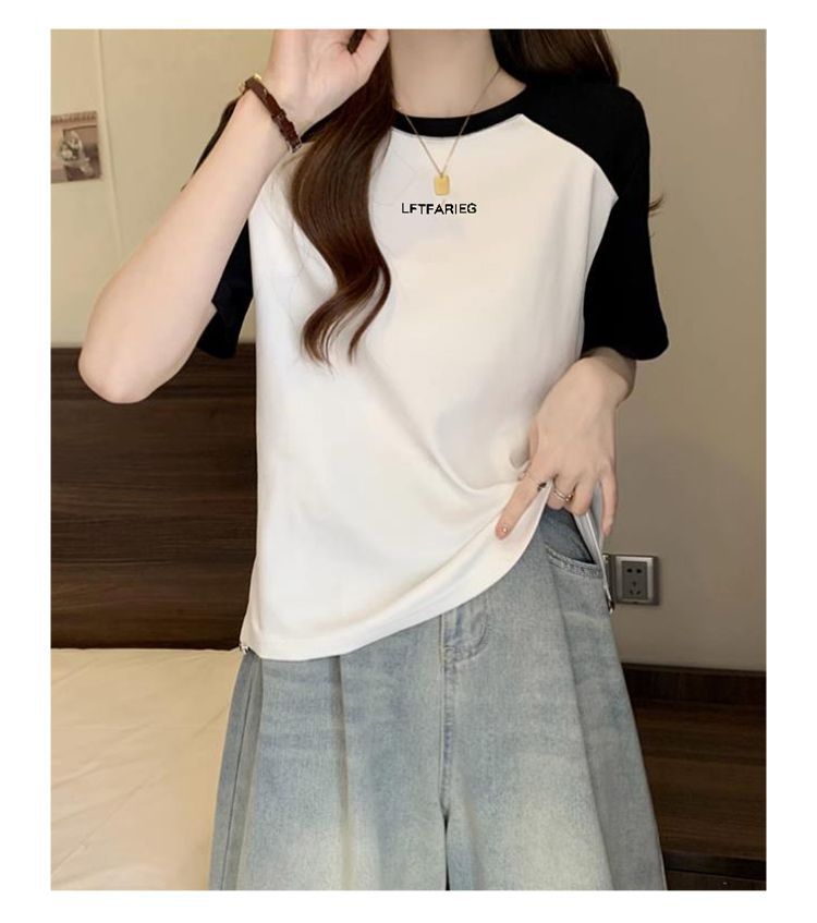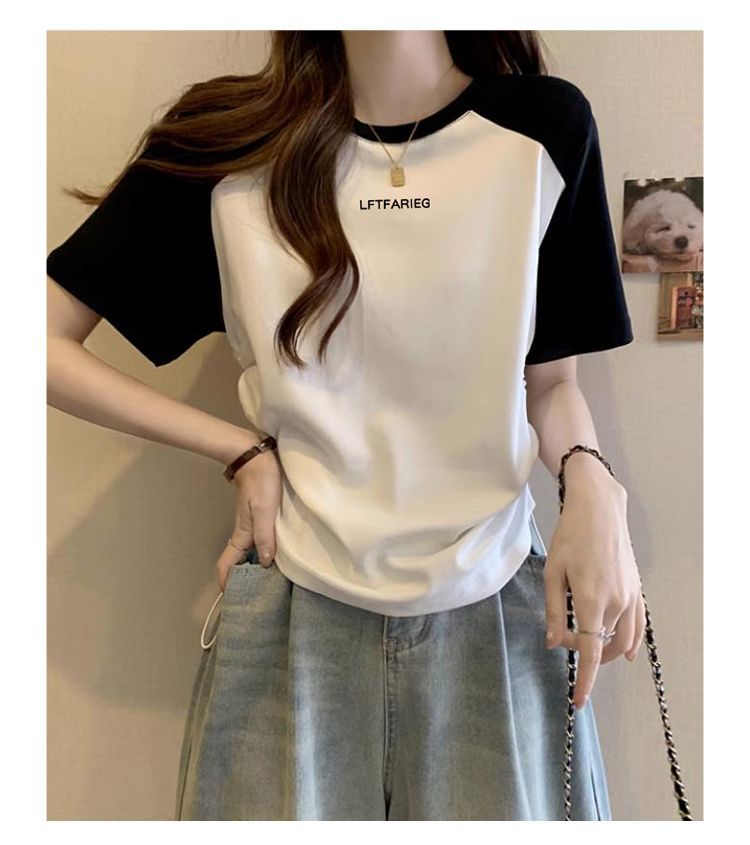 여성용 오른쪽 어깨 반팔 티셔츠 2025 새로운 여름 디자인 틈새 허리 조임 끈 슬리밍 라글란 쇼트 탑스토어 가기