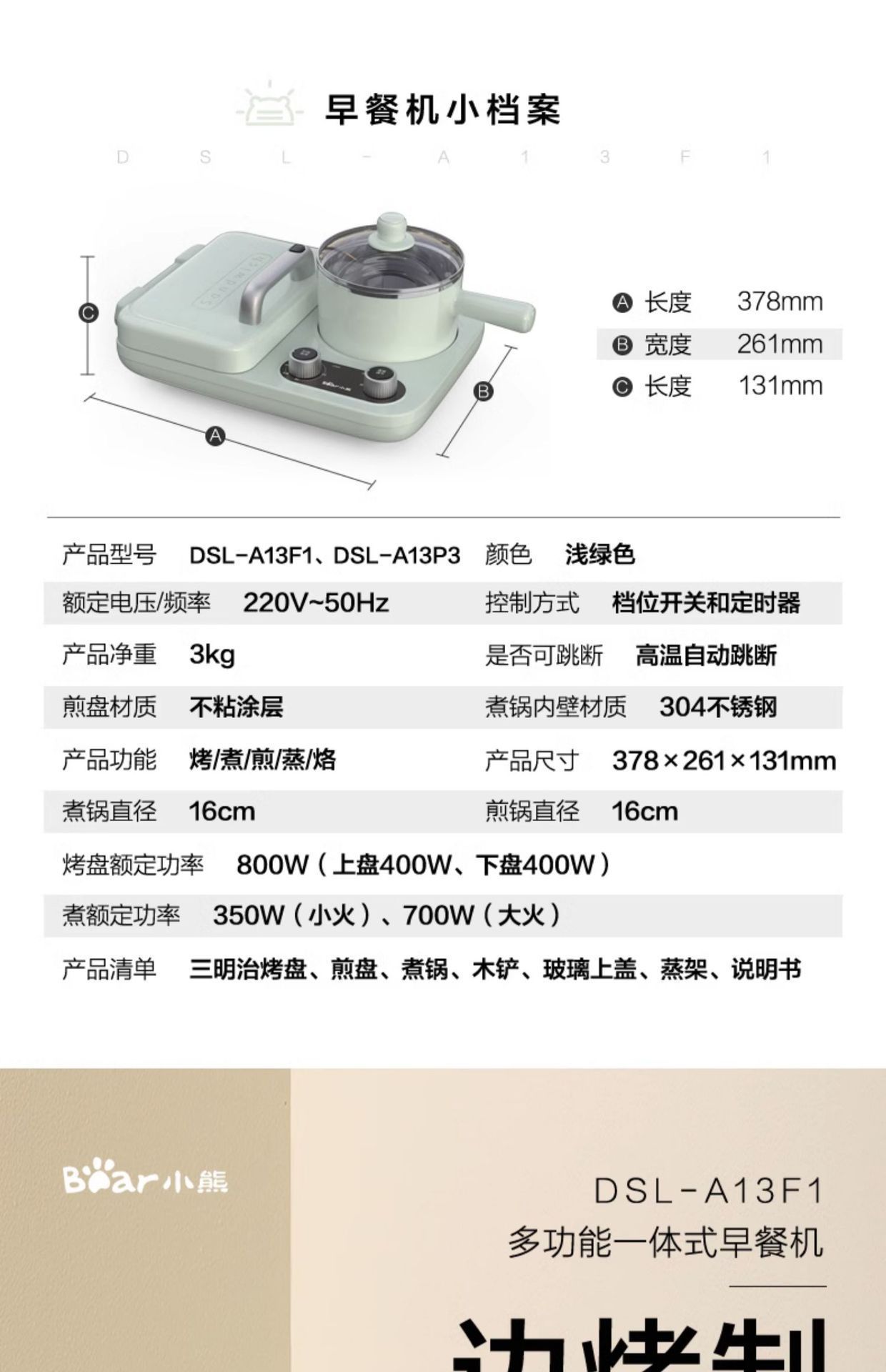 곰 아침 식사 기계 샌드위치 기계 DSL-A13F1 토스터 빵 전기 베이킹 팬 다기능 팬케이크 요리 냄비스토어 가기
