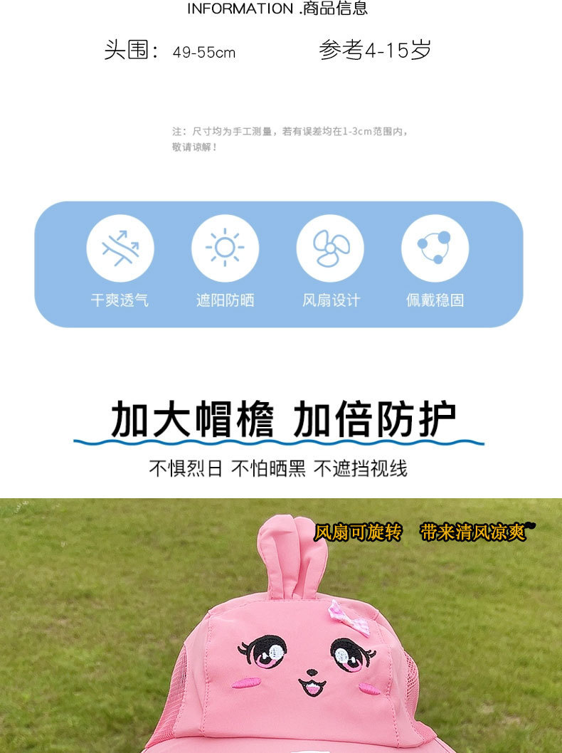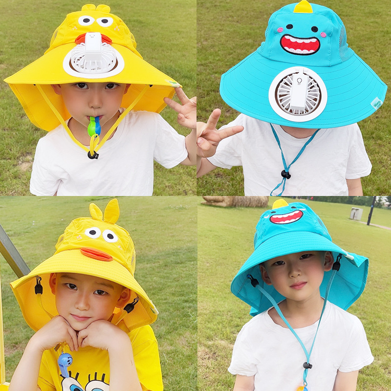 팬이 달린 어린이용 태양 모자, 아기 여름 새로운 얇은 소년 소녀용 태양 모자, 빈 탑 태양 모자