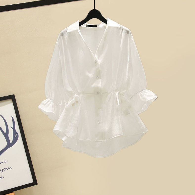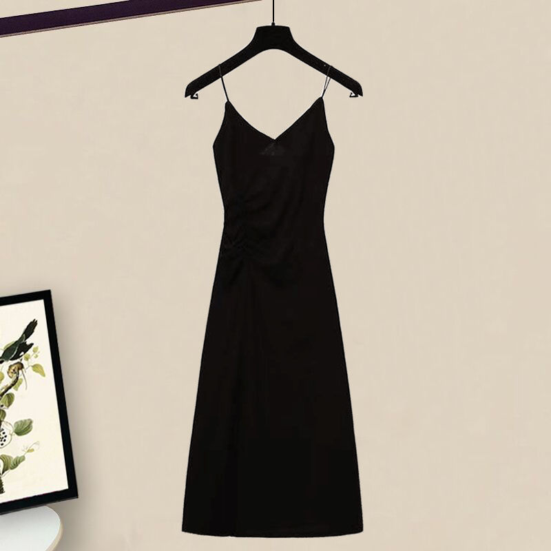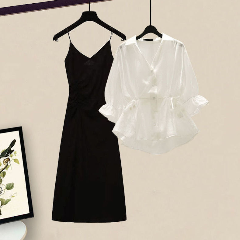 여름 정장 여성 2025 새로운 대형 여성 허리 슬리밍 살 커버 셔츠 서스펜더 드레스 투피스 트렌디 세트스토어 가기