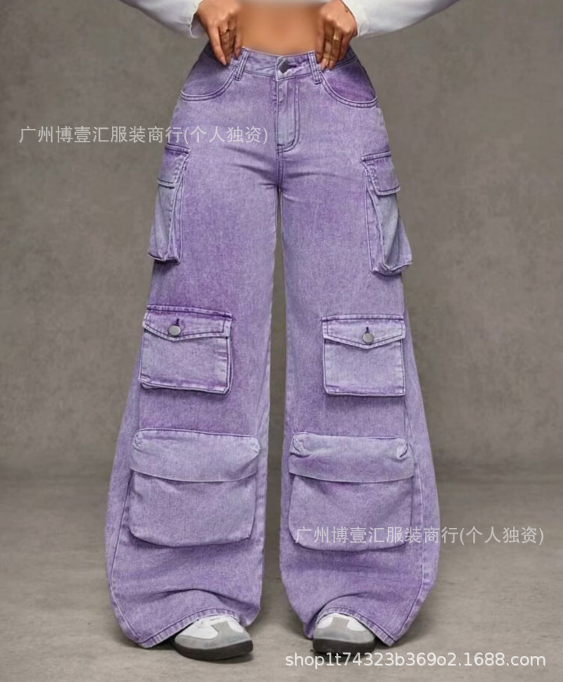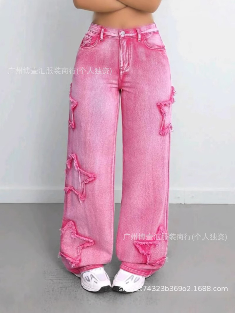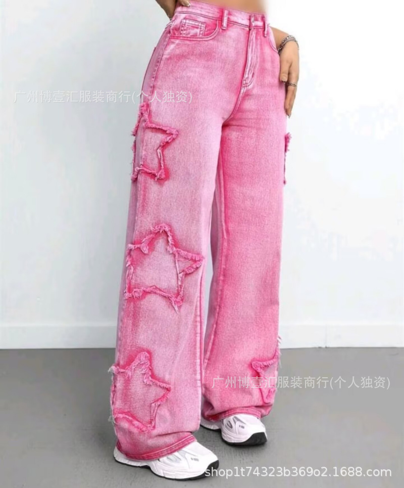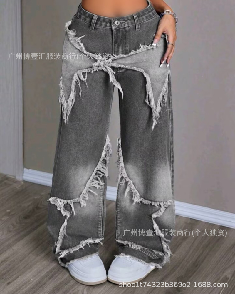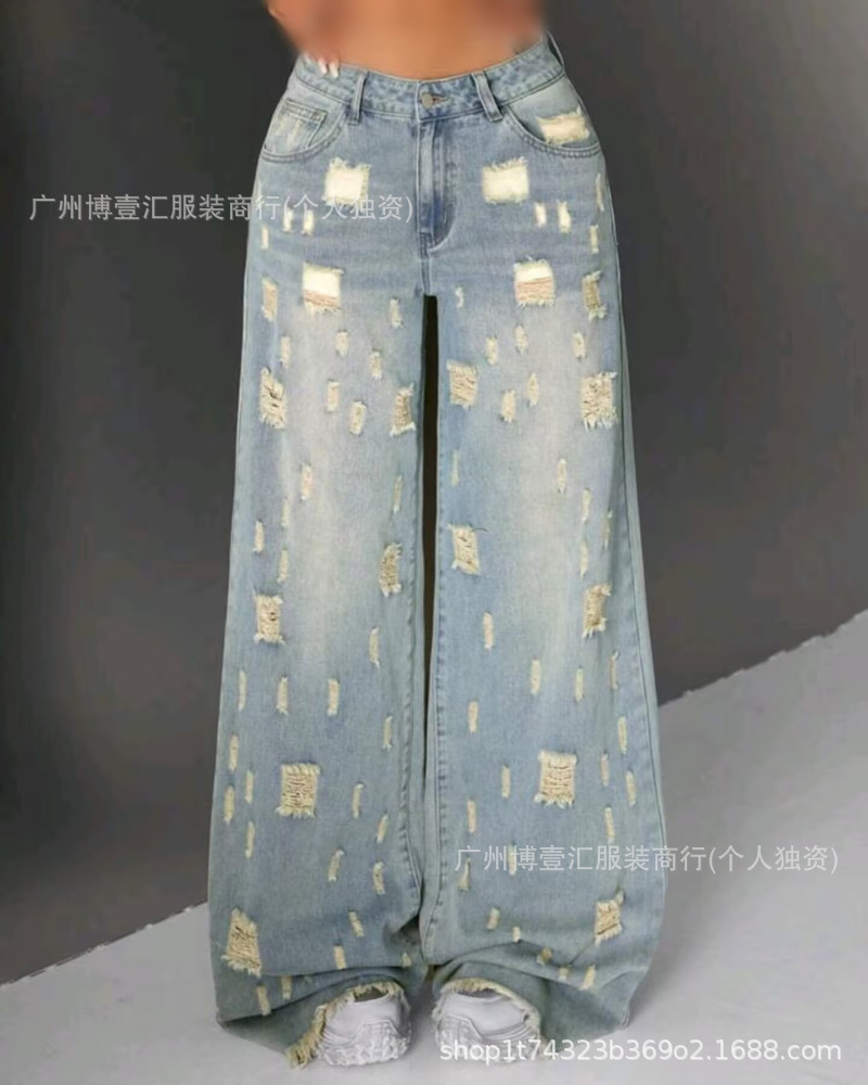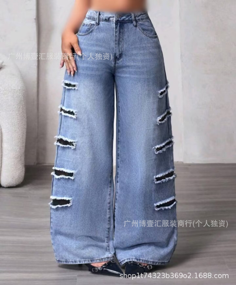믹스 디자인 여성 청바지 여성 청바지 아메리칸 플러스 사이즈 루즈한 와이드 레그 청바지 여성스토어 가기