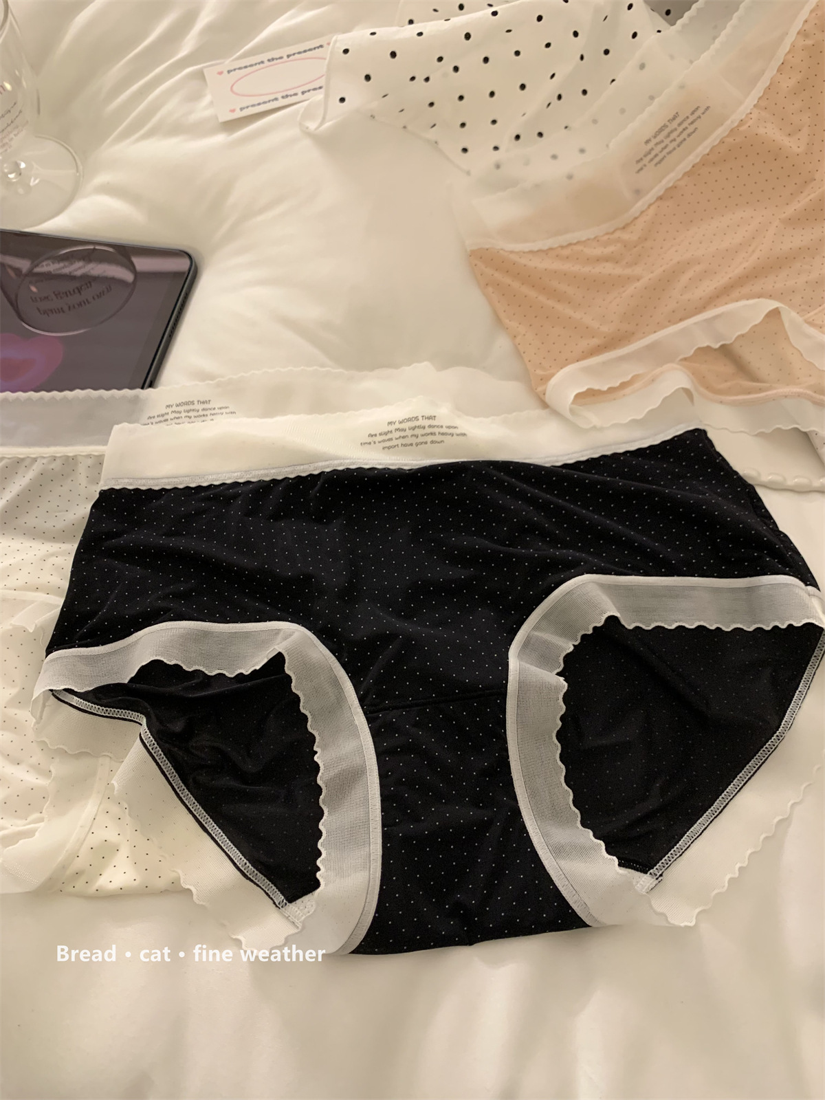 폴카 도트 걸스 아이스 실크 속옷 여성의 통기성 미드 하이 허리 10A 더 긴 코튼 크로트 비 헴 노마크 얇은 여성스토어 가기