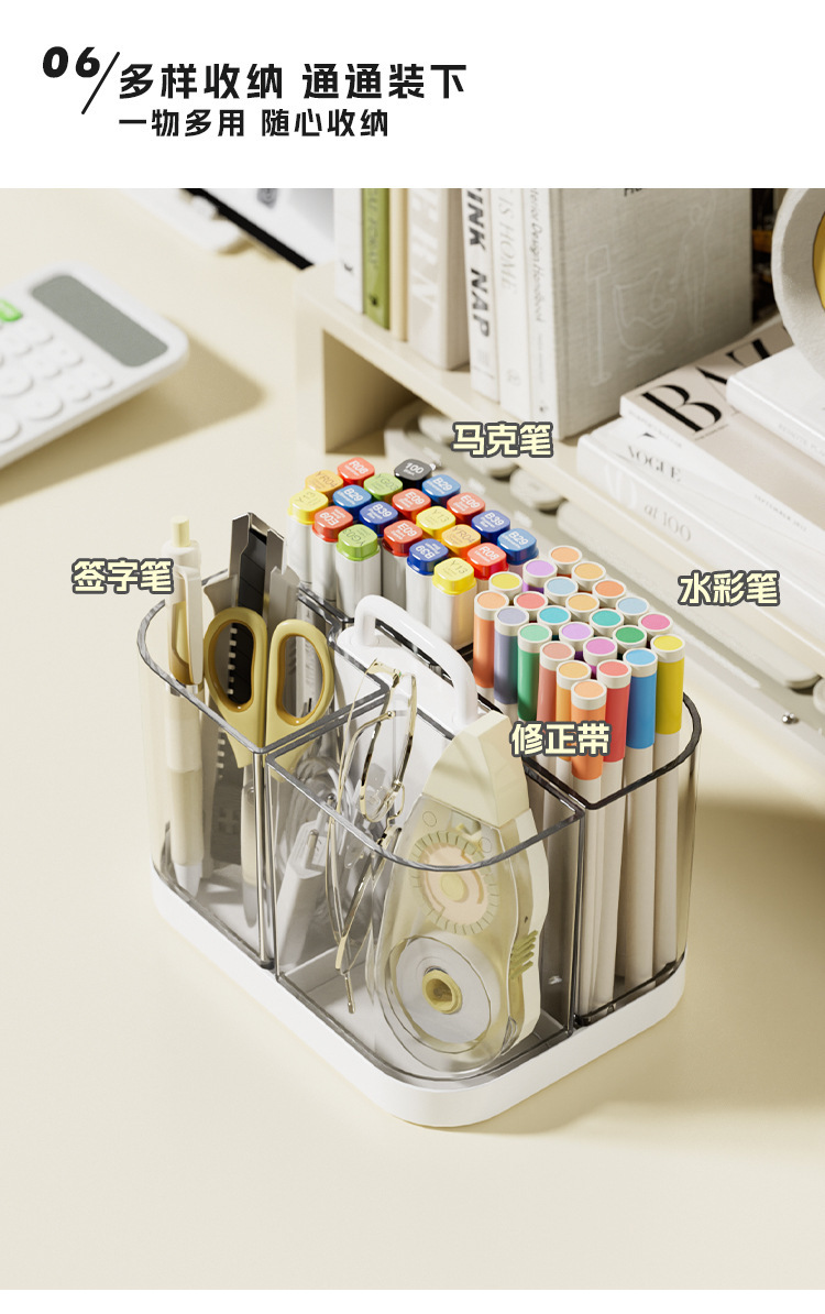 4칸 데스크탑 수납함, 학생용 펜홀더, 사무실용 가벼운 고급형 고급 펜박스, 책상용 투명 문구 펜통스토어 가기