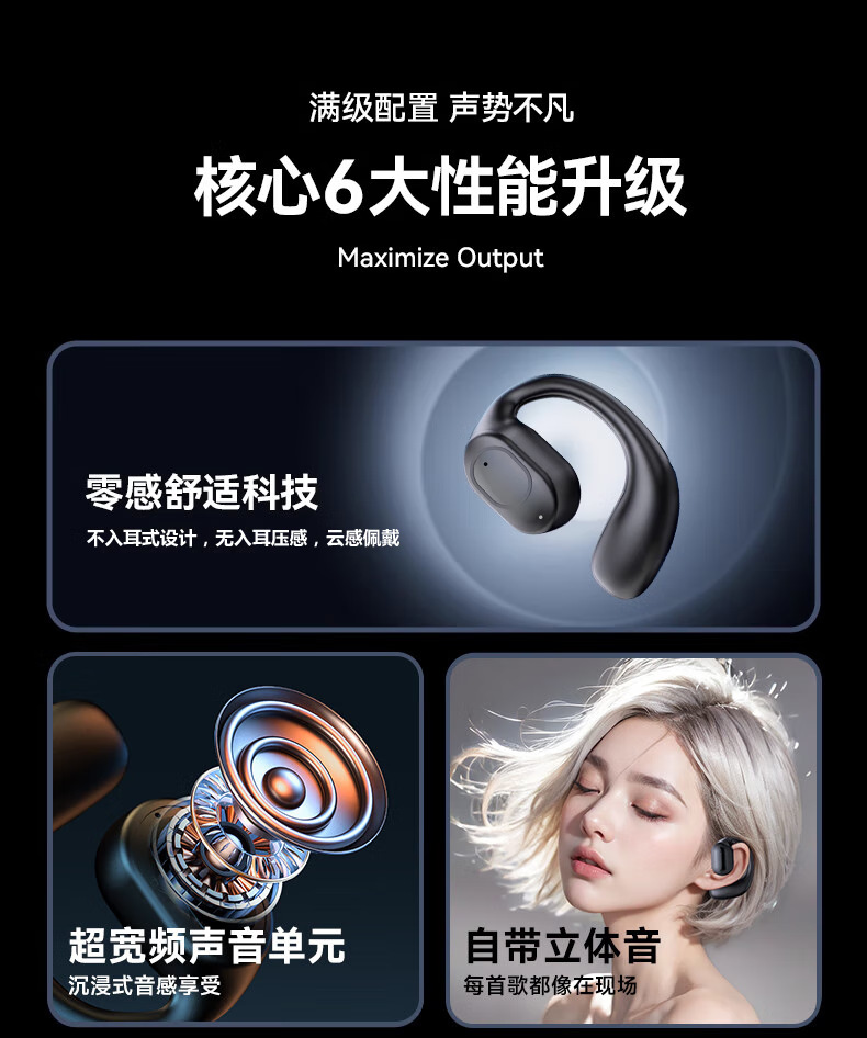 Oppo huawei vivo 사과 기장을위한 귀에 매달린 스포츠가 아닌 열린 무선 블루투스 헤드셋