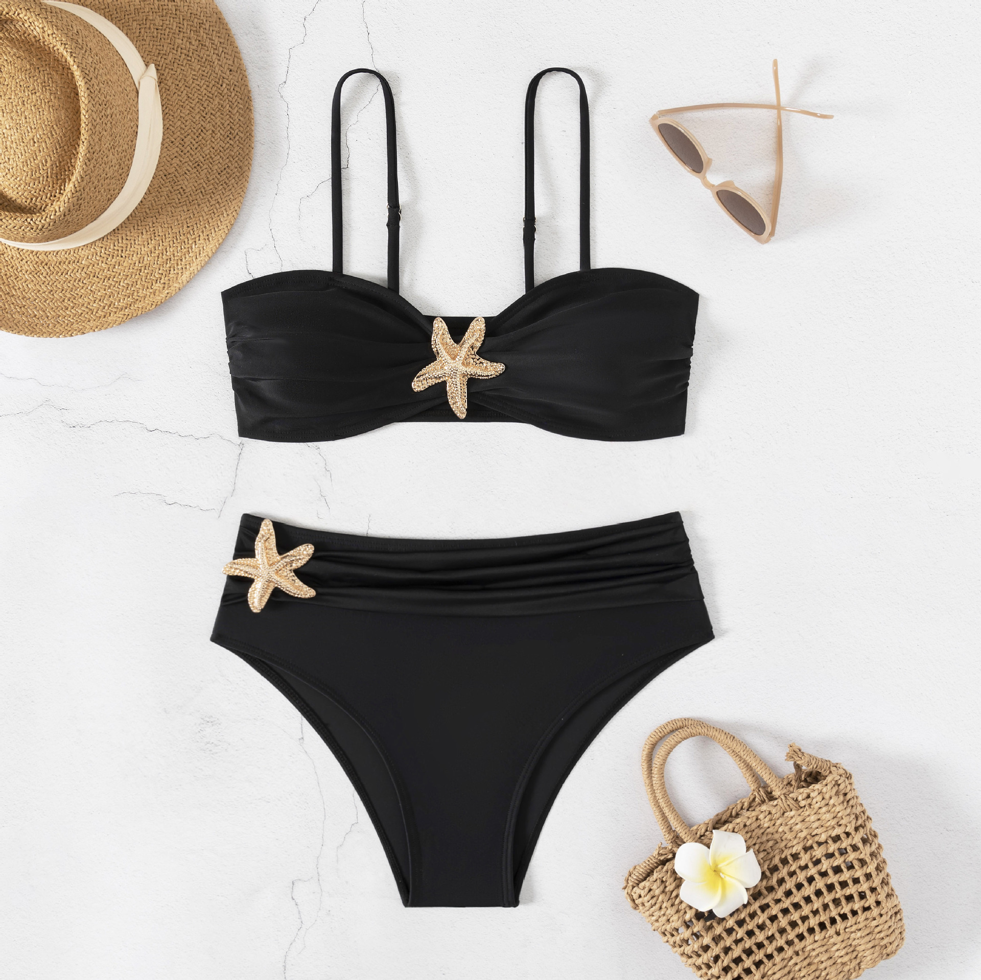 2024 새로운 Amazon 유럽과 미국의 섹시한 솔리드 컬러 하이 웨이스트 스플 라이스 스플릿 비키니 여성 수영복 제조 업체 도매
