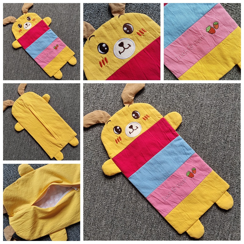 可爱的拼布刺绣小狗设计,枕面和背面都是棉布缝制,背面有拉链,方便换洗,内有吸汗层,增强吸汗性同时对枕面起到一个缓冲作用,3个规格,适合0-9岁的孩子用,图案可爱活泼,特别受小朋友欢迎的一款产品