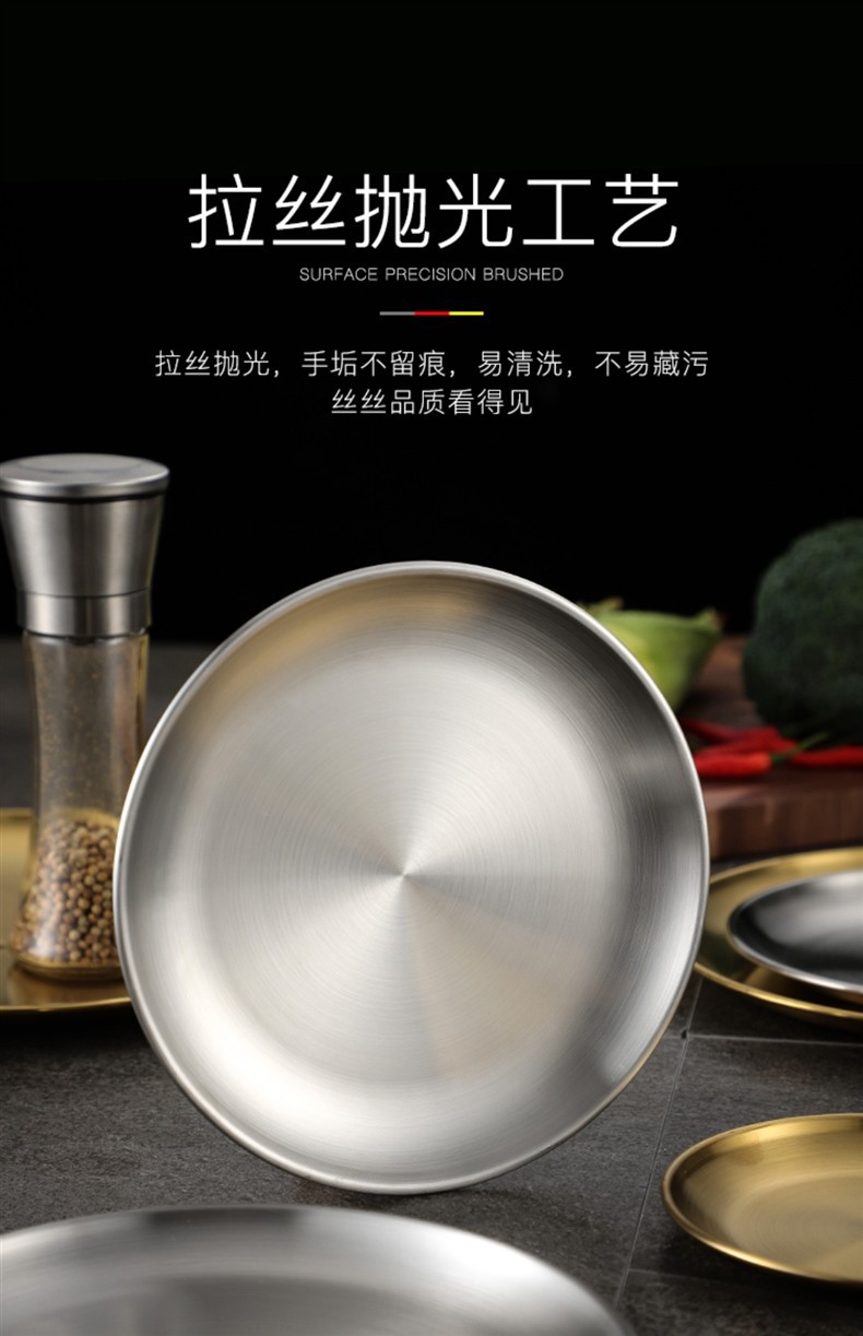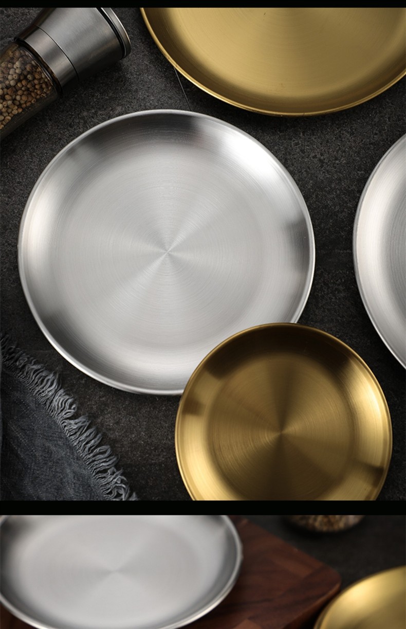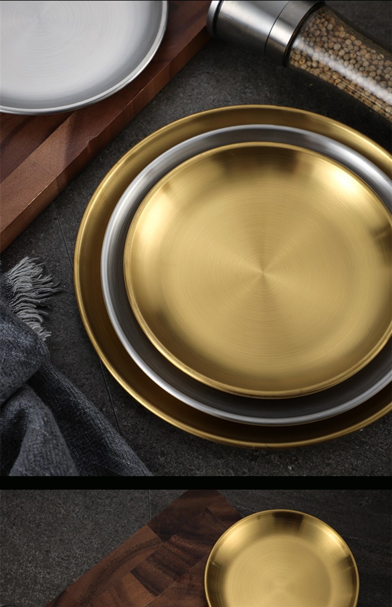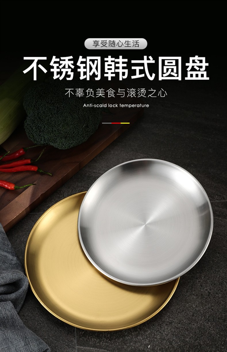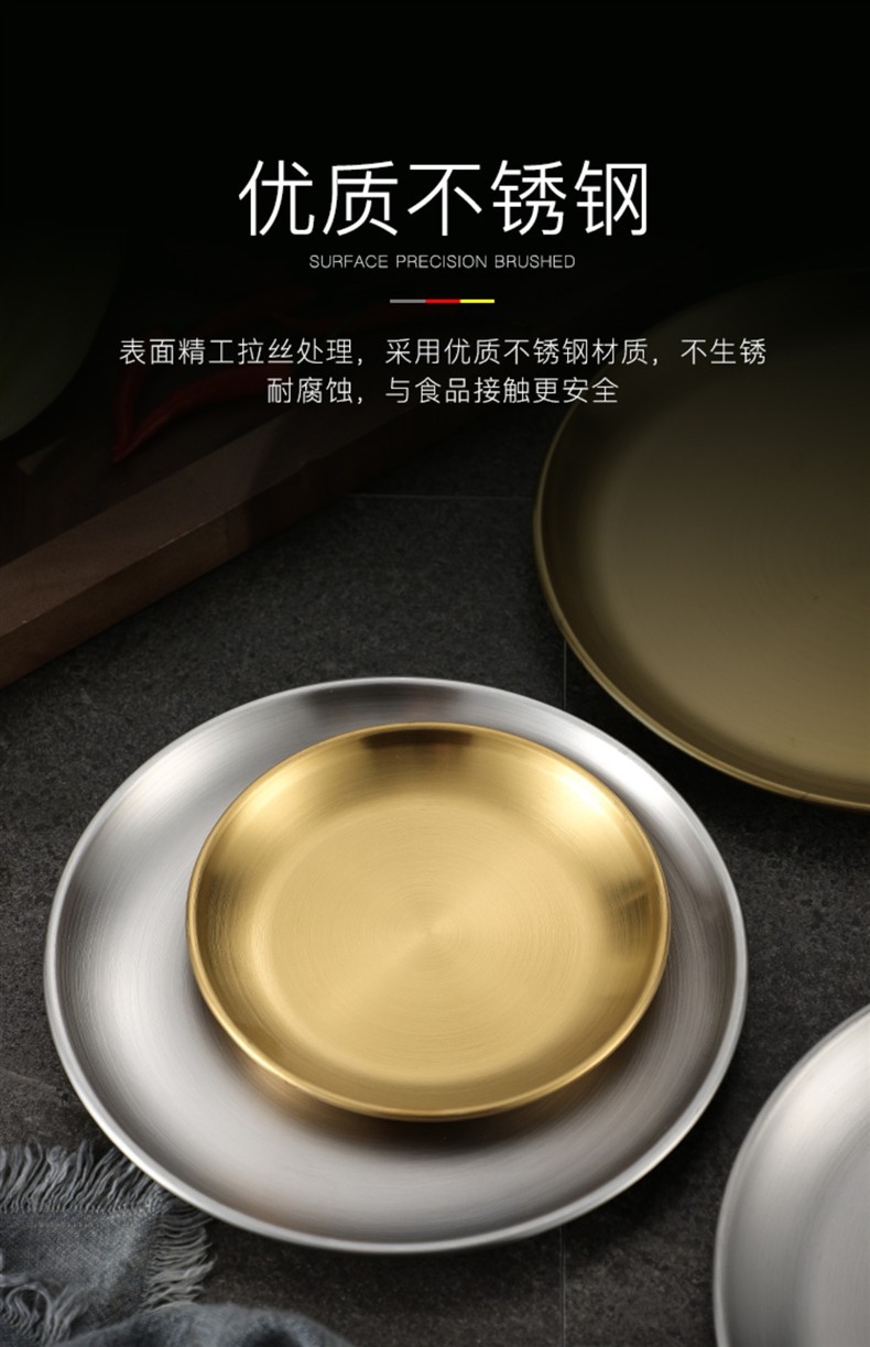 한국식 304 스테인레스 스틸 디스크 상업용 황금 바베큐 플레이트 트레이 과일 케이크 접시 디너 플레이트 뼈 플레이트 얕은 플레이트스토어 가기