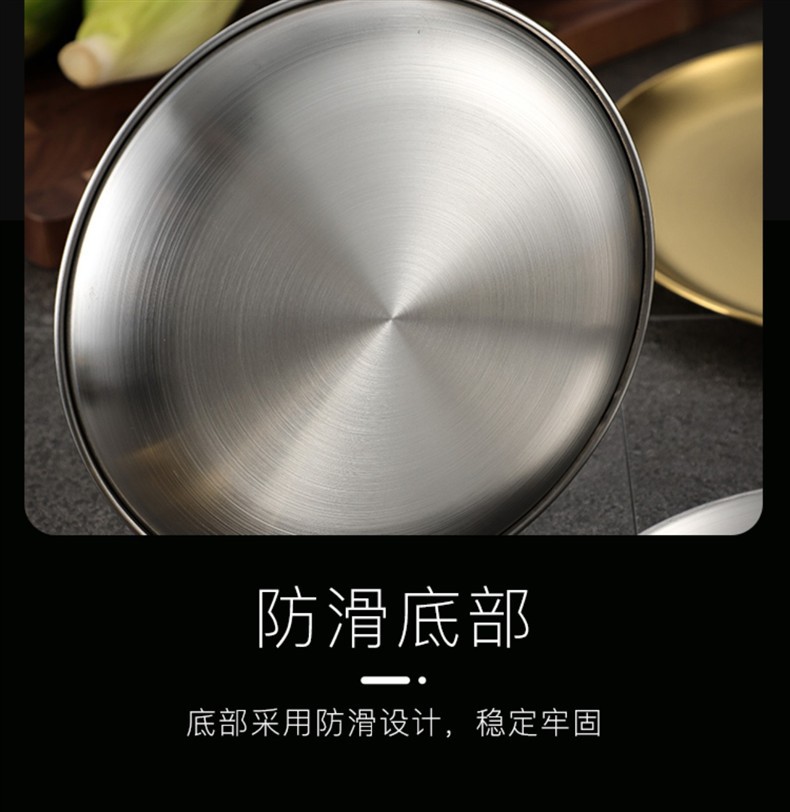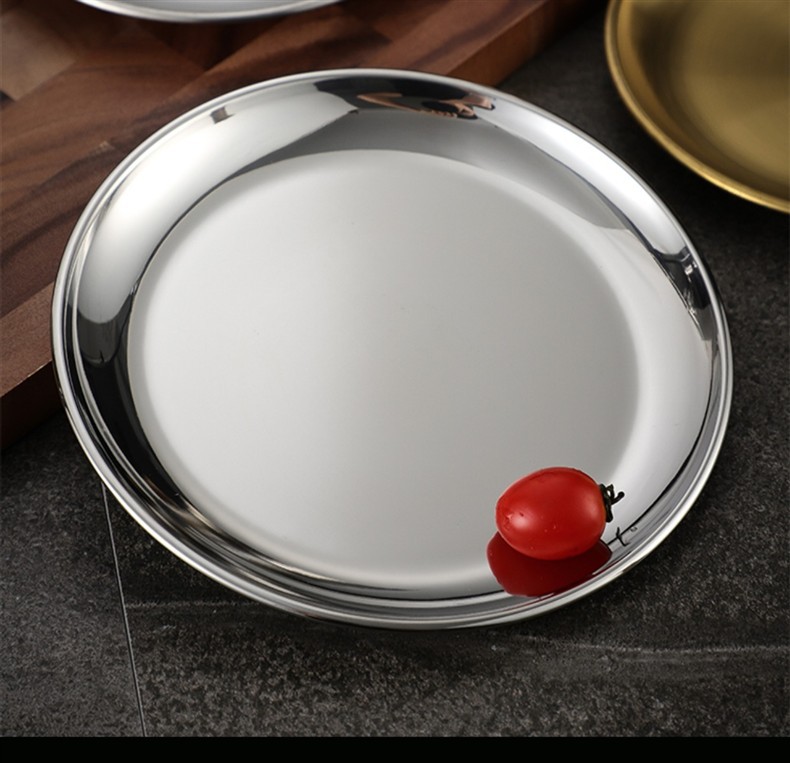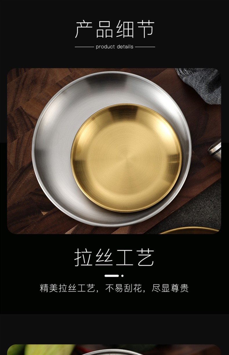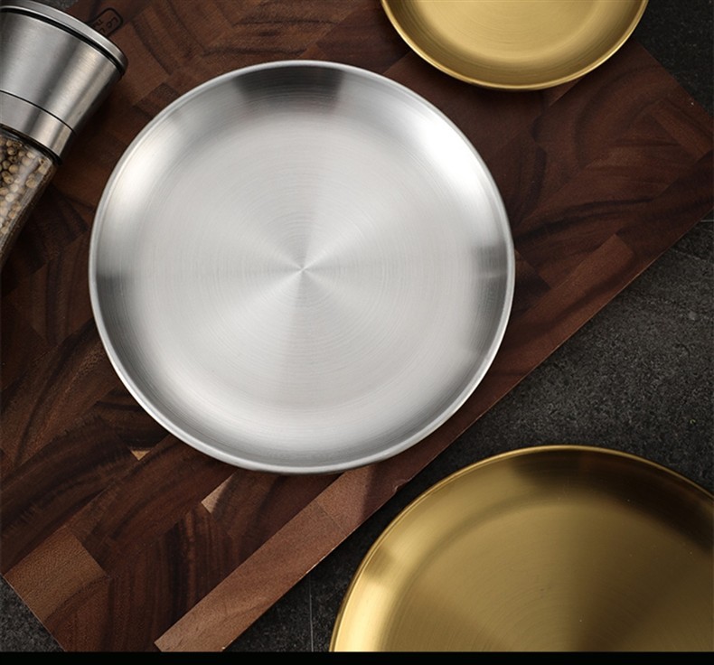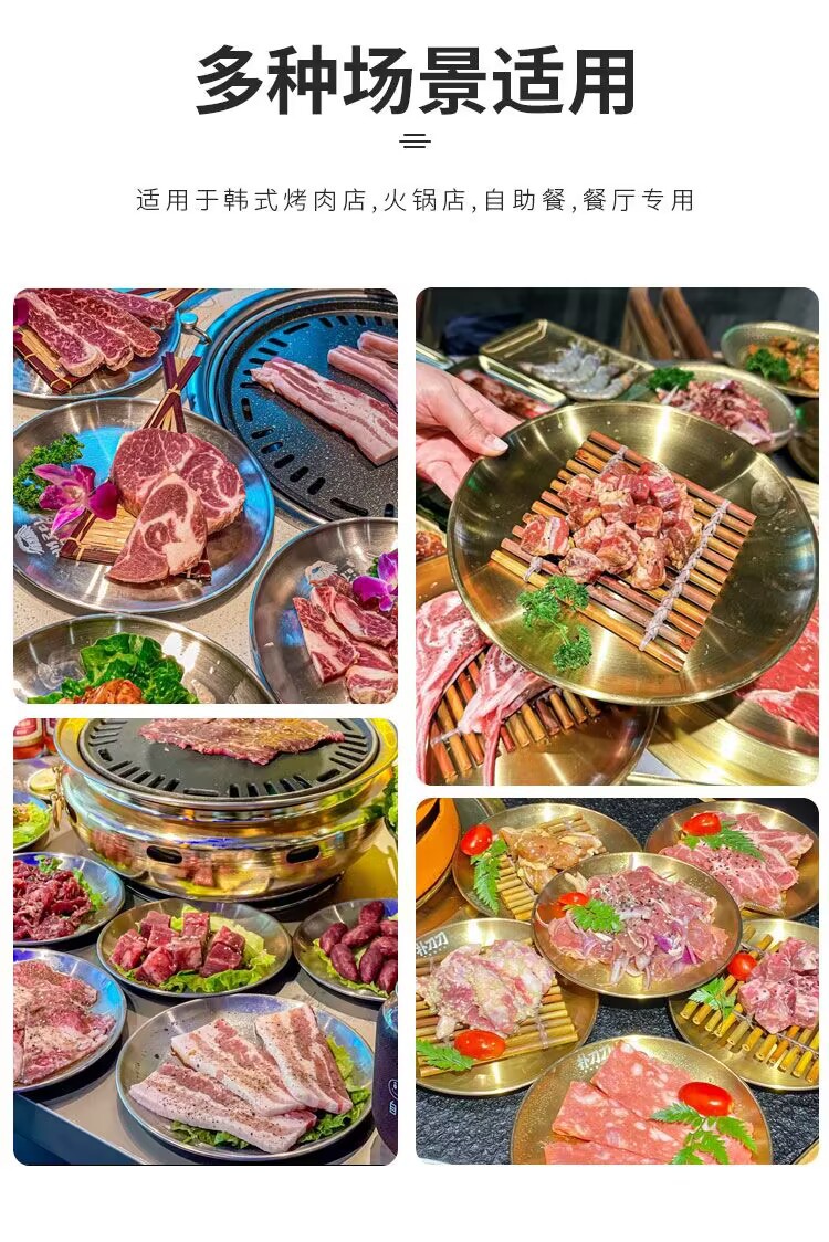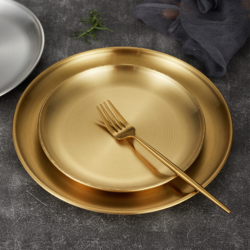 한국식 304 스테인레스 스틸 디스크 상업용 황금 바베큐 플레이트 트레이 과일 케이크 접시 디너 플레이트 뼈 플레이트 얕은 플레이트스토어 가기