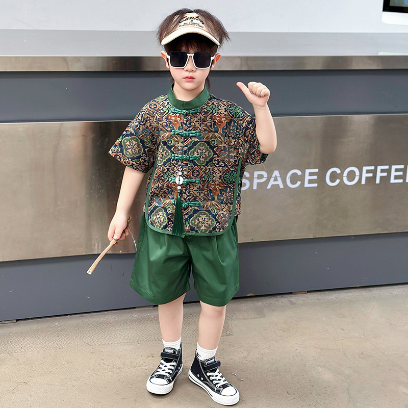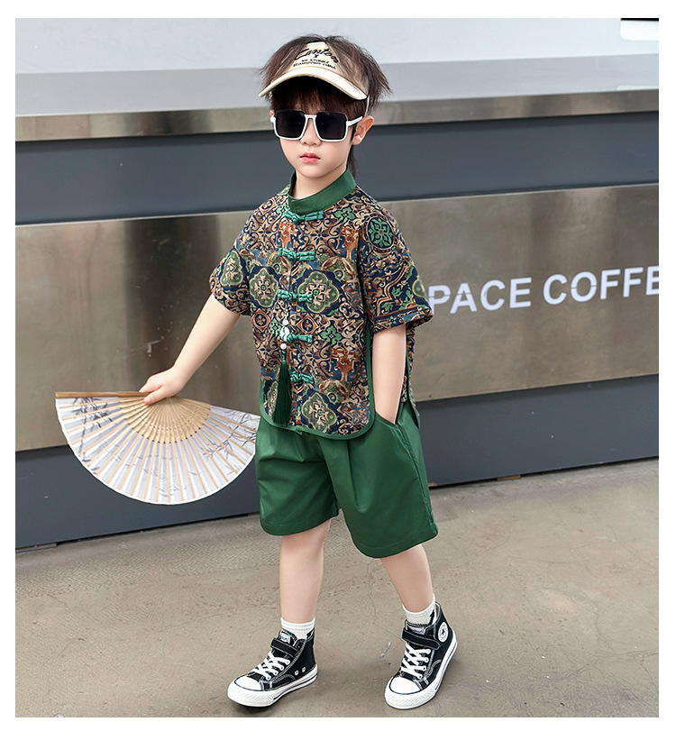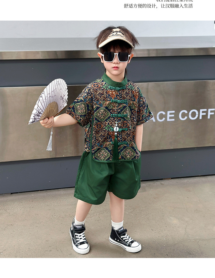 소년 Hanfu 여름 반팔 공연 의상 유치원 유니폼 여름 중국 민족 의상 어린이 새로운 중국 스타일 양복스토어 가기