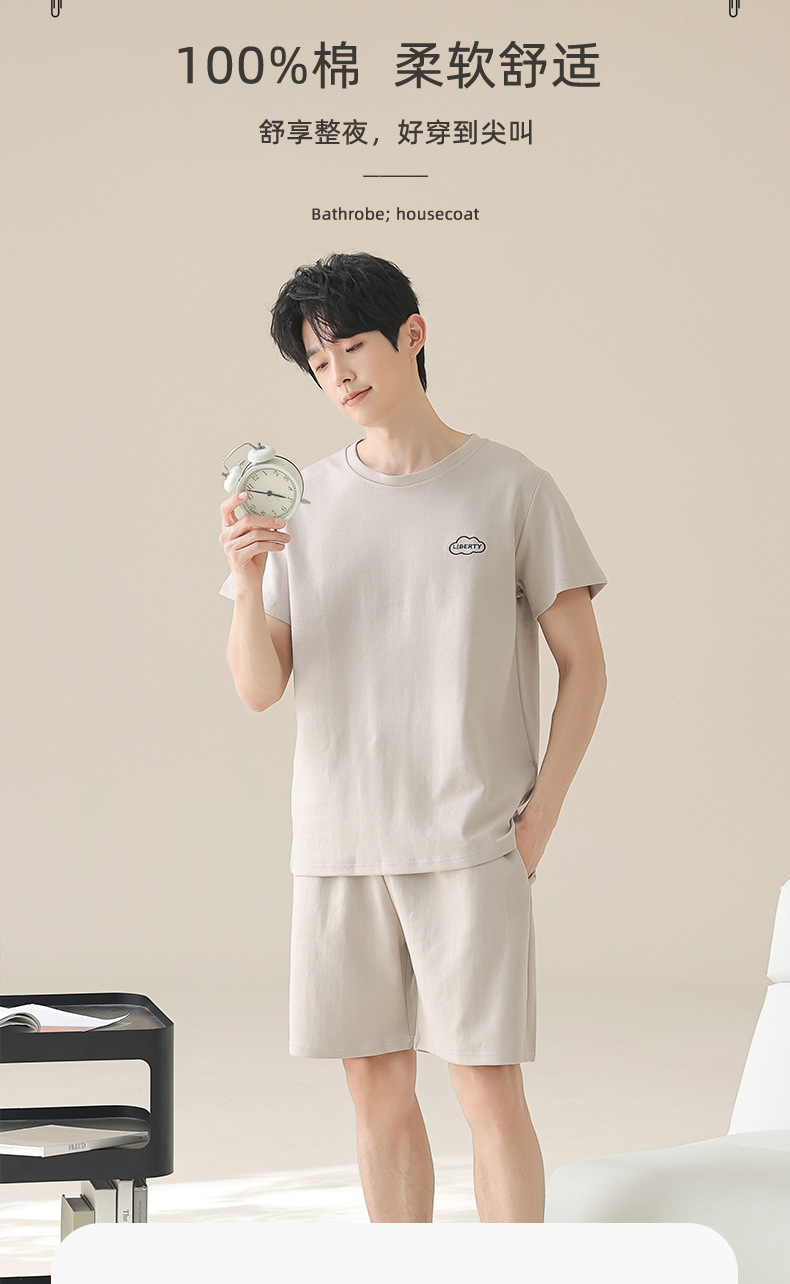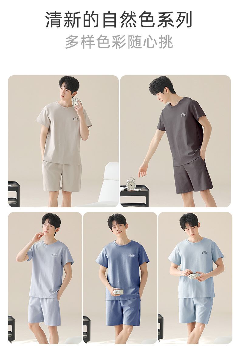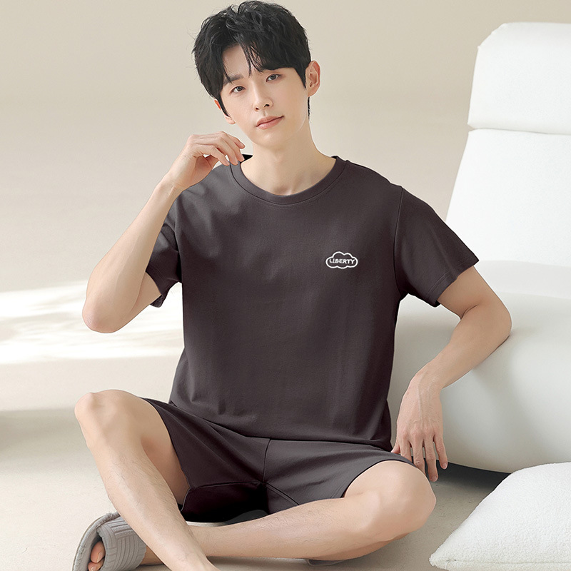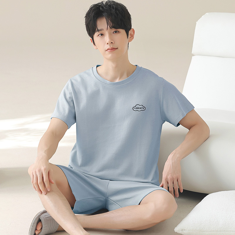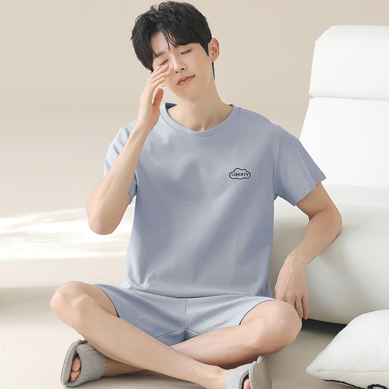 새로운 폭발 남자 여름 순면 솔리드 컬러 잠옷 십대 착용 스포츠 짧은 소매 반바지 홈 의류 세트
