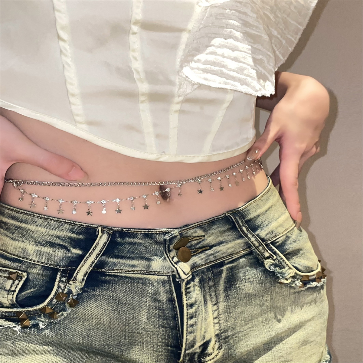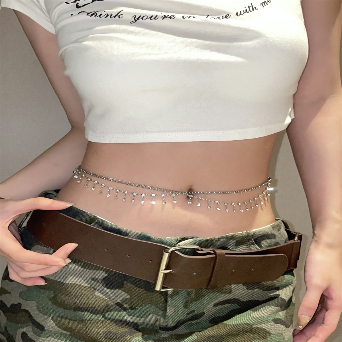 여성을위한 라인 석 금속 허리 체인 액세서리 여름 장식 드레스와 섹시한 바디 체인 여성용 청바지 벨트