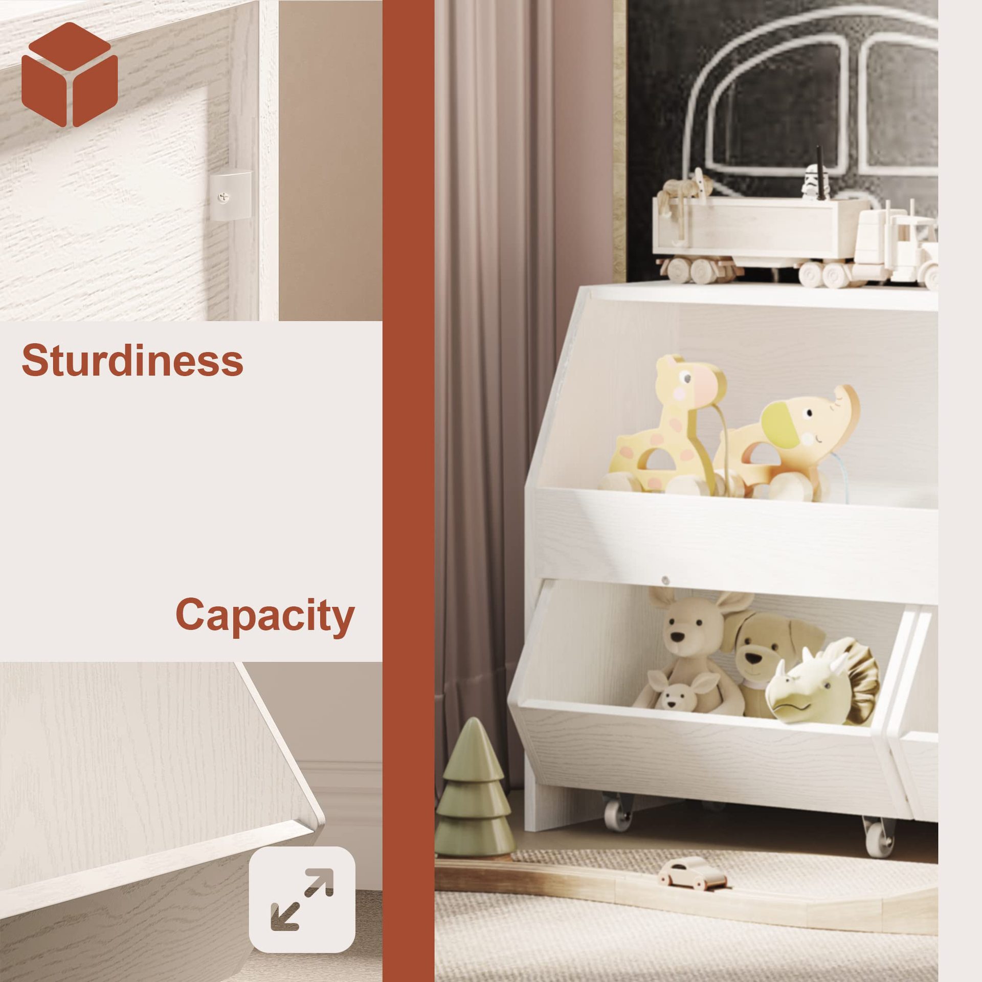 나무 어린이 장난감 보관함, 인형 보관함, 장난감 보관함, 옷, 고급스러운 거실