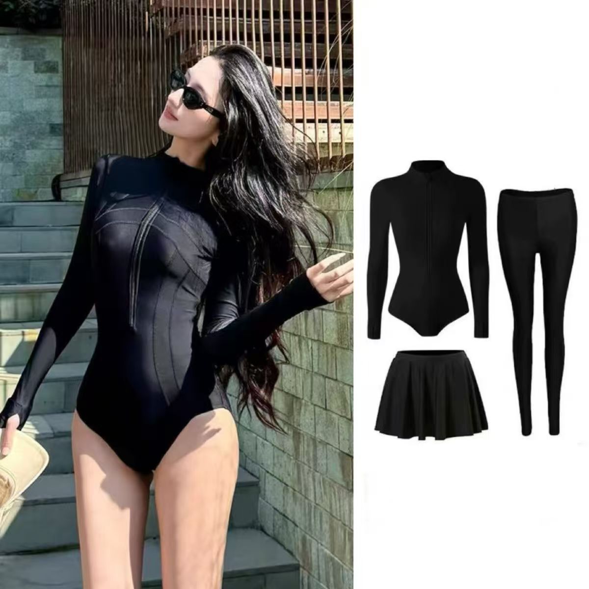 선스크린 스노클링 새로운 도착 화이트 결합 된 삼각형 수영복 여성 긴소매 보수 지방 플러스 사이즈 다이빙 서핑 해파리스토어 가기