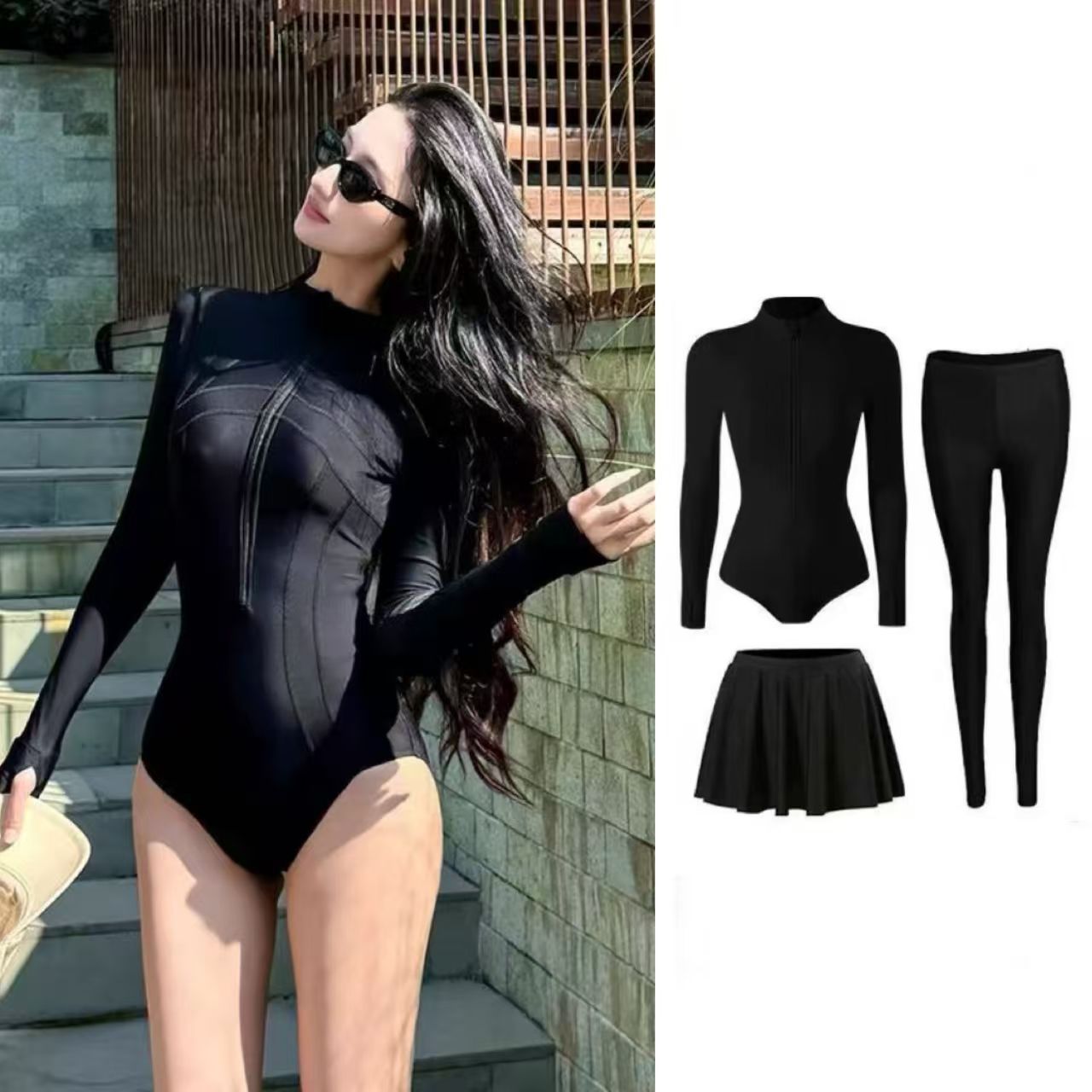 선스크린 스노클링 새로운 도착 화이트 결합 된 삼각형 수영복 여성 긴소매 보수 지방 플러스 사이즈 다이빙 서핑 해파리