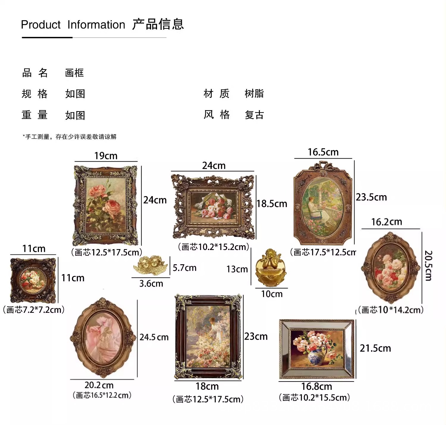 유럽식 복고풍 고급 맞춤형 도매 모조 원목 수지 6inch a4 사진 프레임 액자 맞춤형 벽걸이 자석 부착 가능