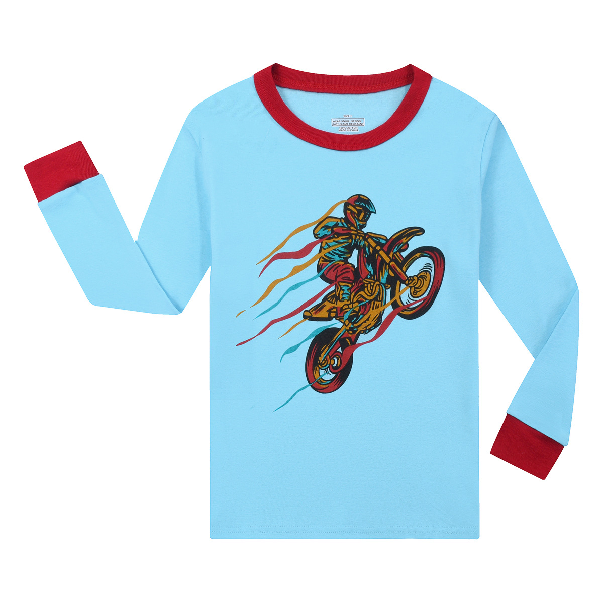 유럽과 미국의 아동복, 남아 및 여아 가정복, 잠옷, 멋진 오토바이 에어컨 의류, 피부 친화적이고 따뜻한 세트