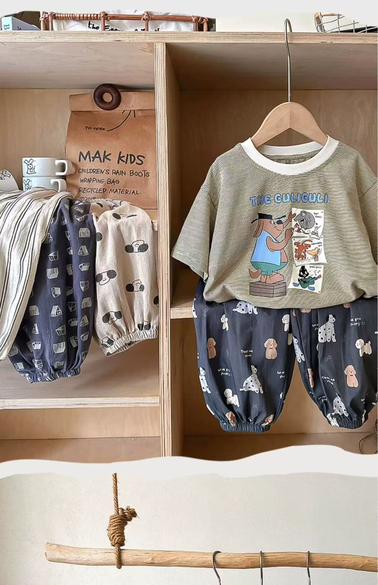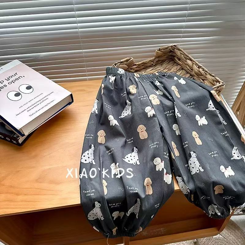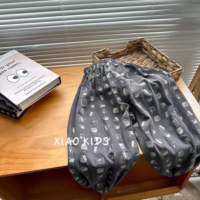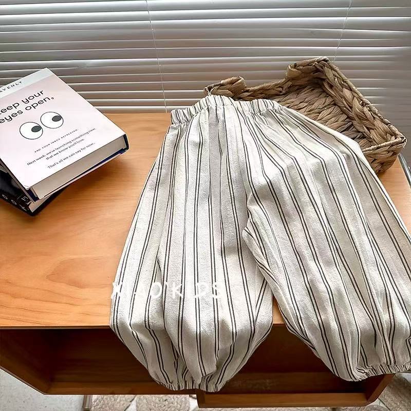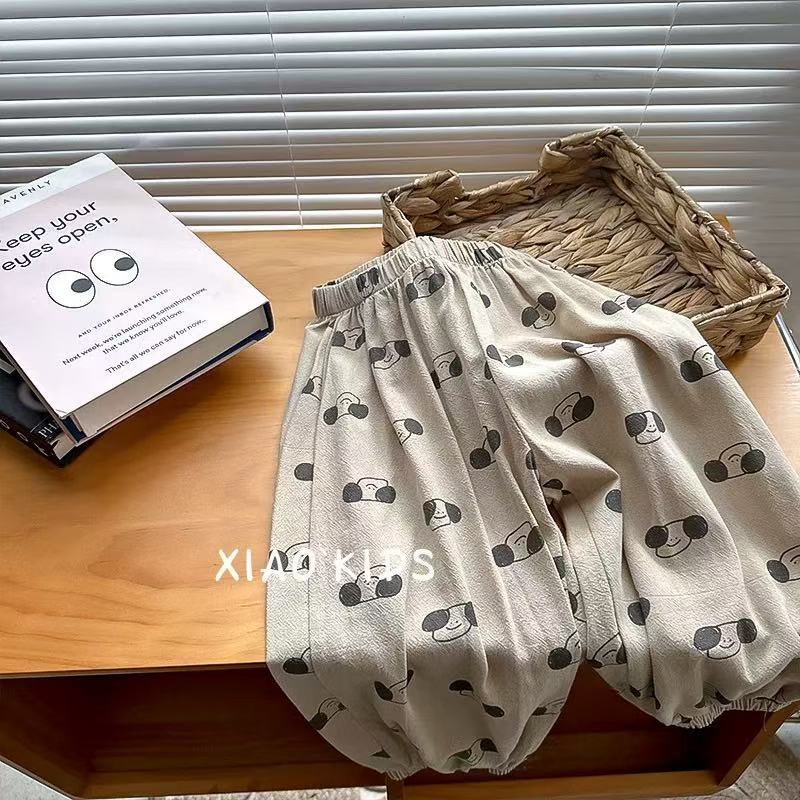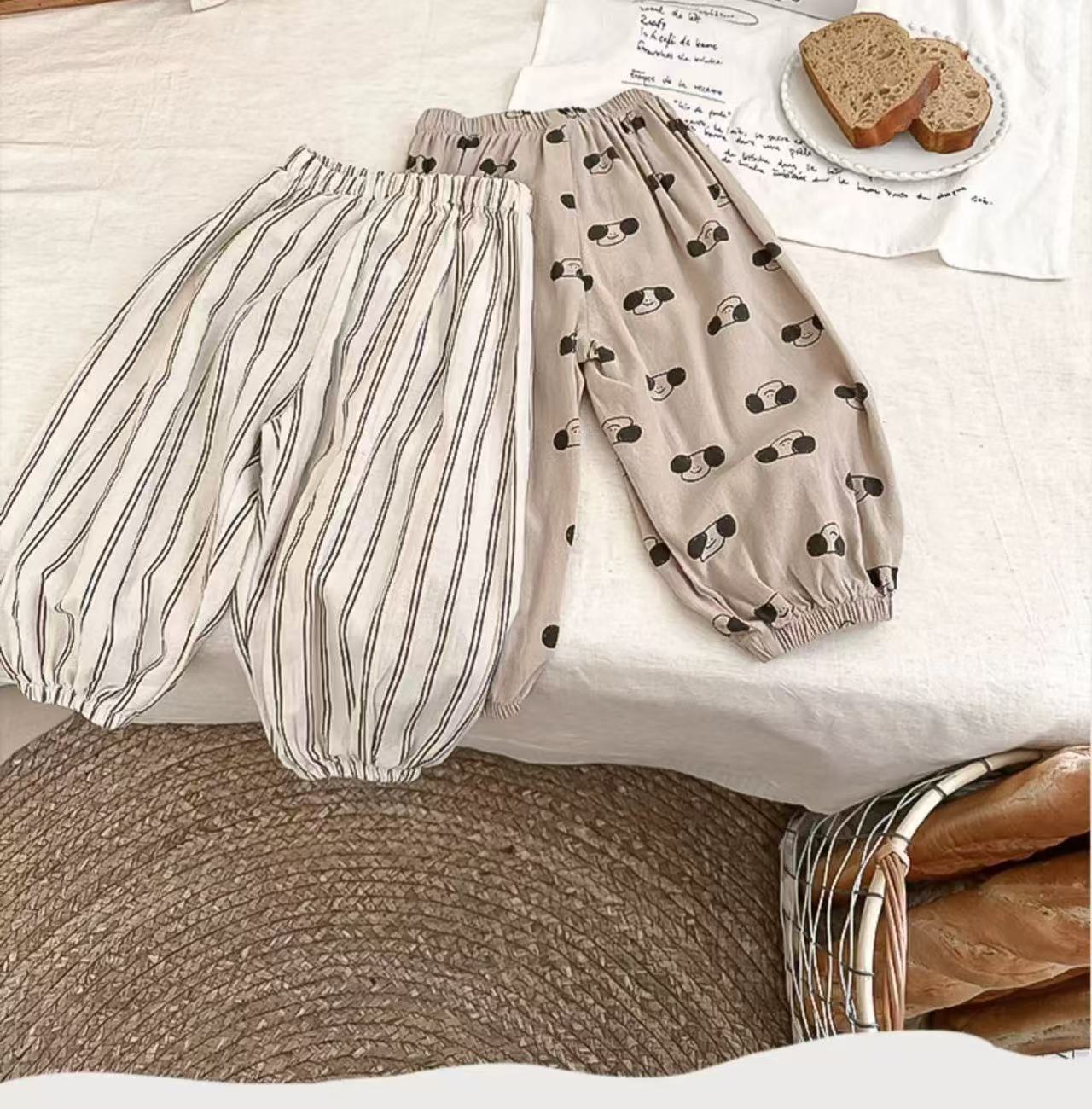 여름 준비~ 남아, 여아 모두를 위한 아동용 다용도 아이스 듀 린넨 프린트 얇은 모기 방지 바지, 아기용 통기성 커프스 바지