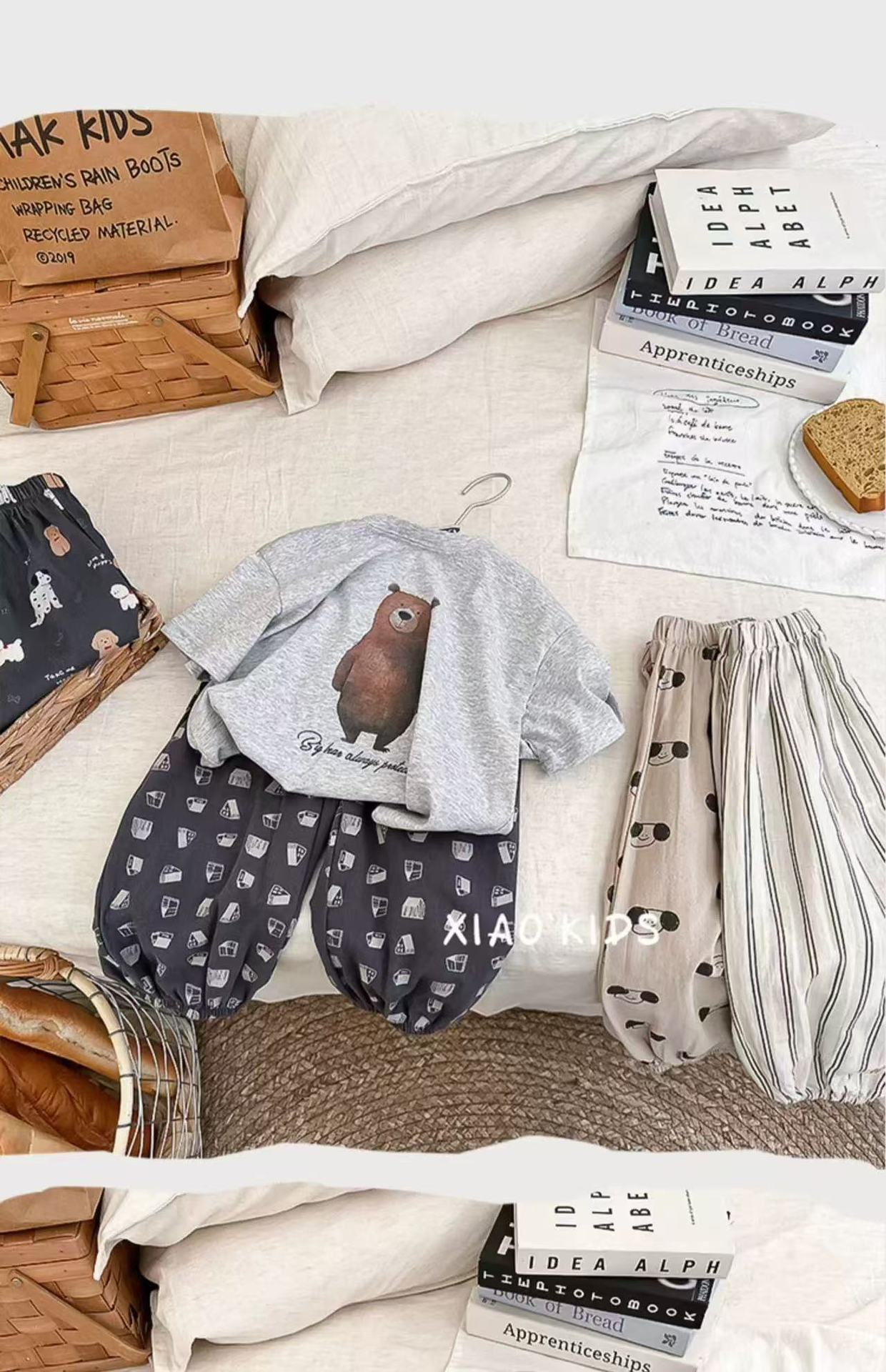 여름 준비~ 남아, 여아 모두를 위한 아동용 다용도 아이스 듀 린넨 프린트 얇은 모기 방지 바지, 아기용 통기성 커프스 바지스토어 가기