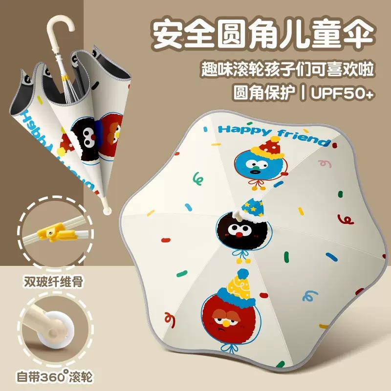 만화 둥근 모서리 어린이 우산, 안전한 안티 리바운드 반사 스트립, 남성과 여성을 위한 비 또는 빛 우산, 초등학생을 위한 접이식 차양