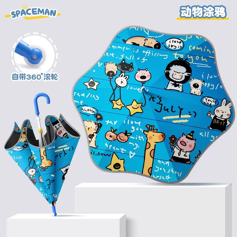 만화 둥근 모서리 어린이 우산, 안전한 안티 리바운드 반사 스트립, 남성과 여성을 위한 비 또는 빛 우산, 초등학생을 위한 접이식 차양스토어 가기