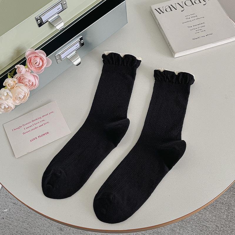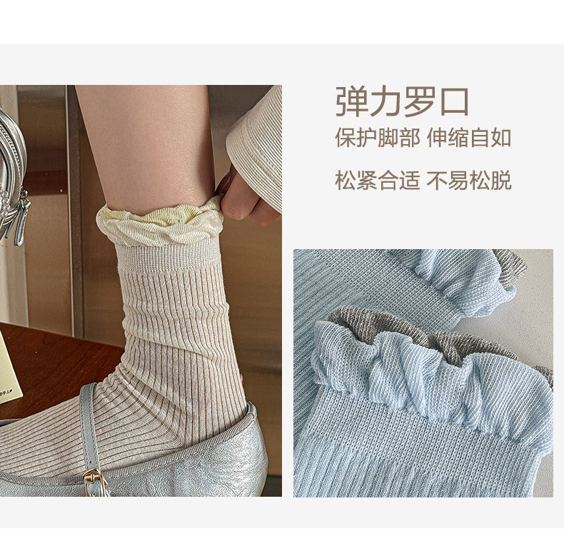 여성용 도파민 미우 스타일 양말 봄 얇은 버섯 레이스 양말 통기성 일본식 트렌디 튜브 양말스토어 가기