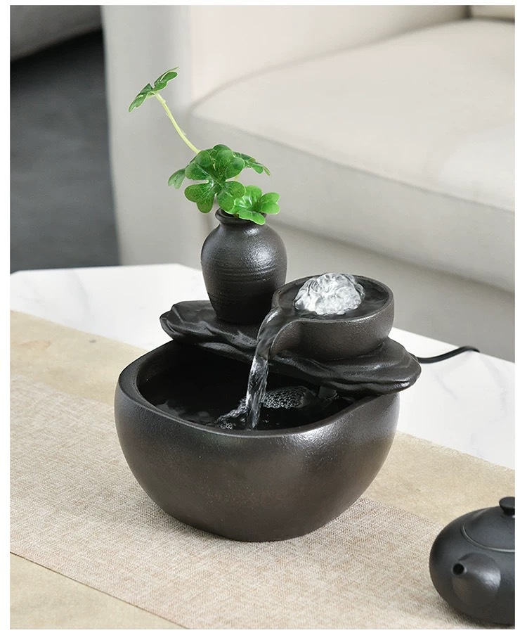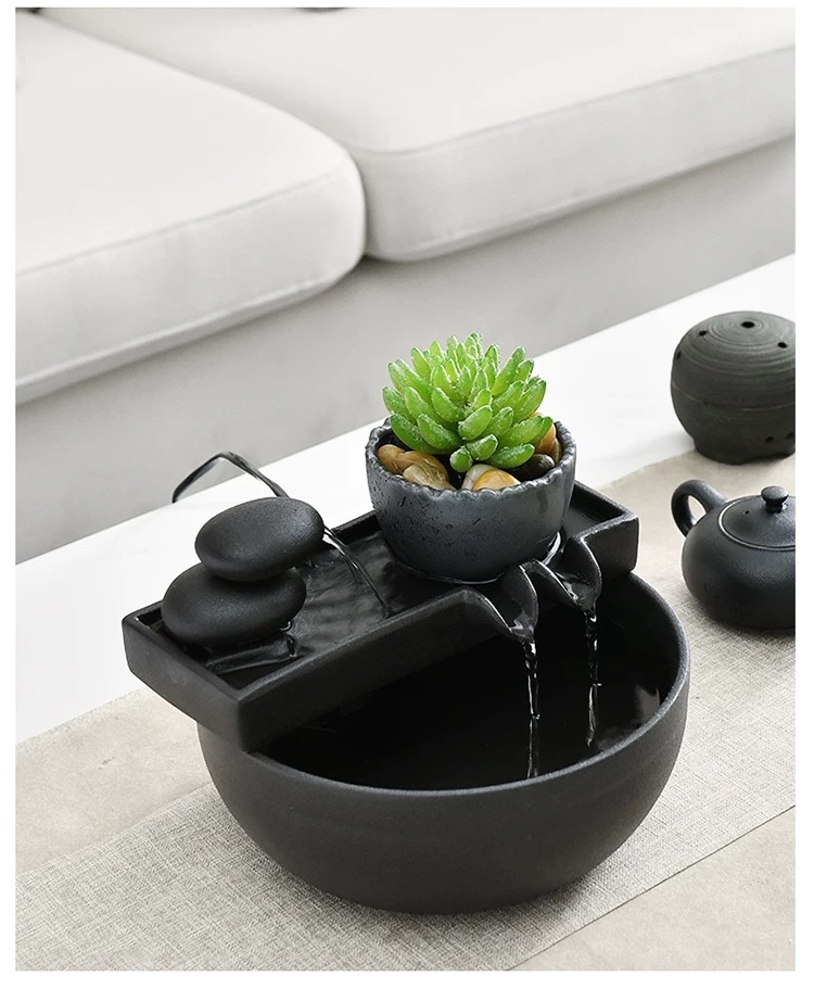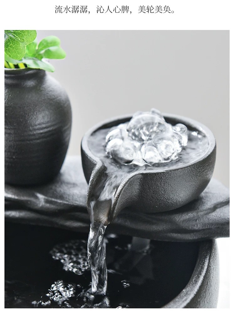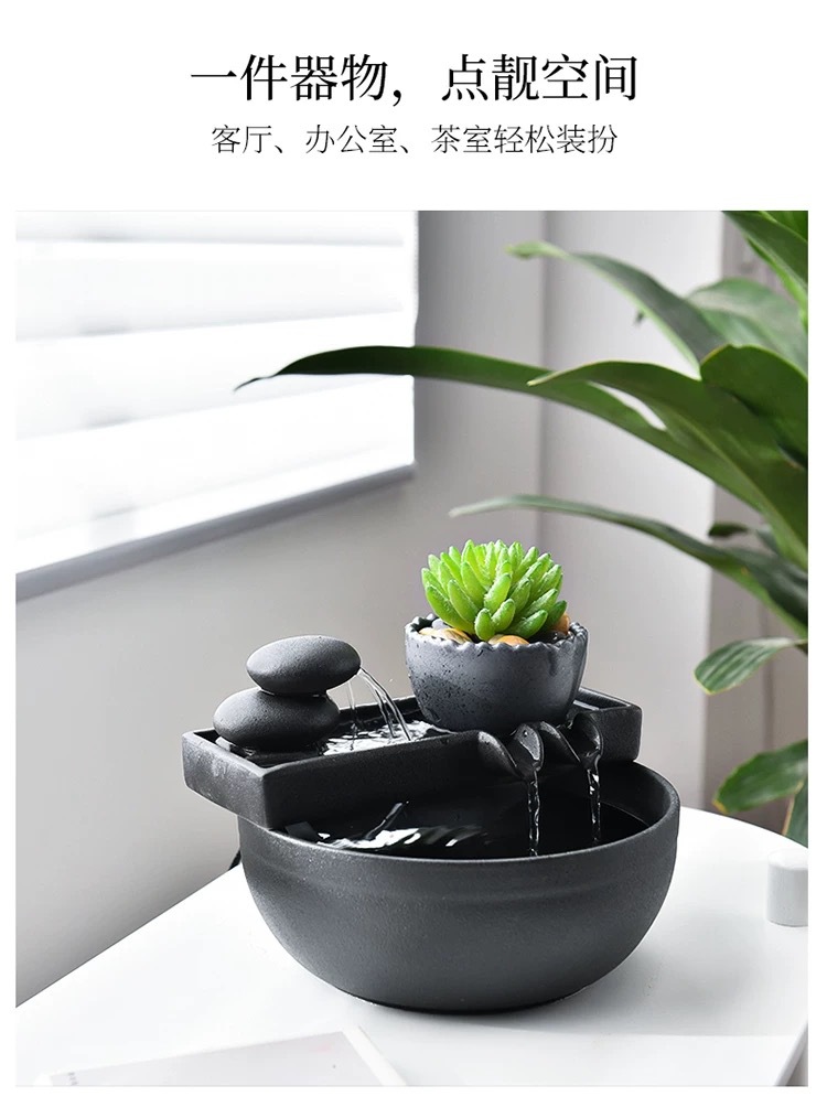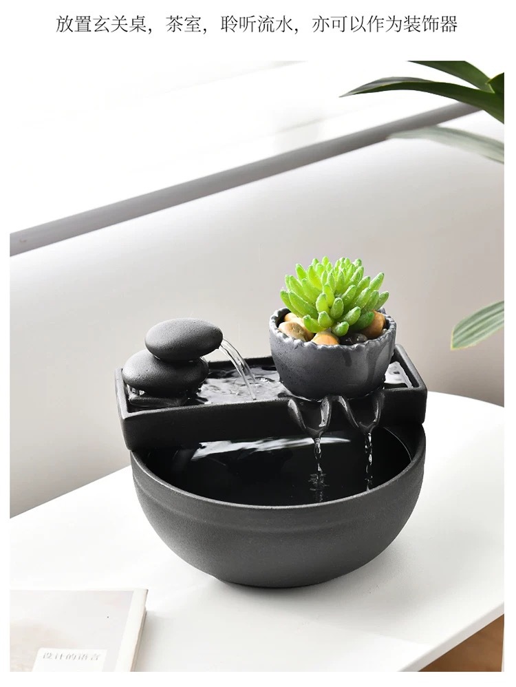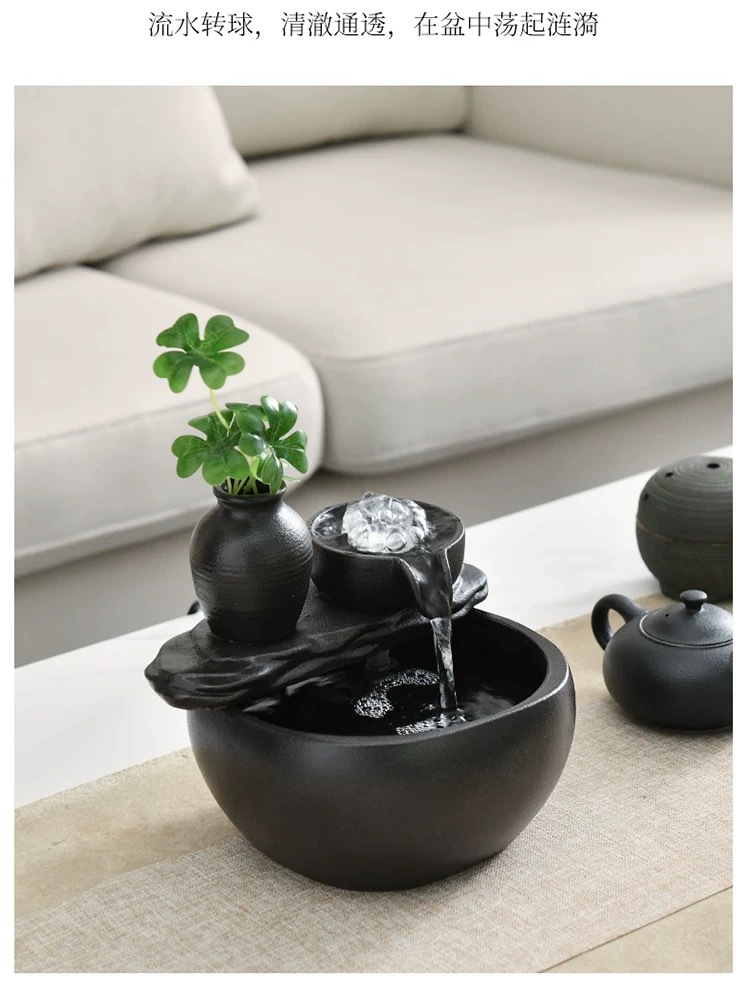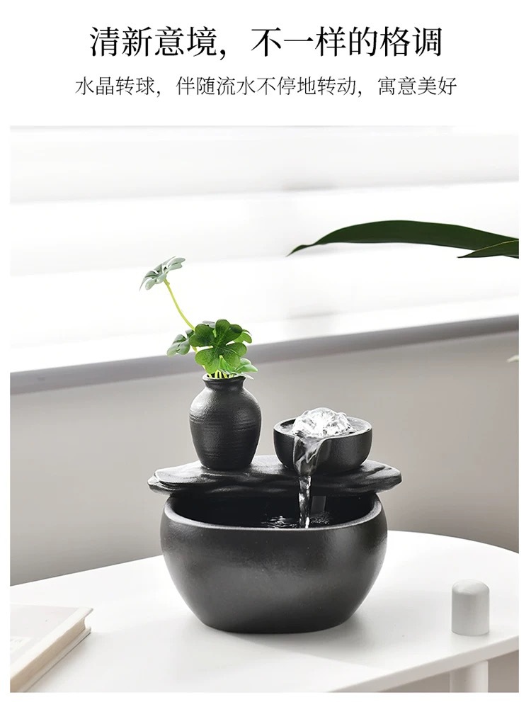 집 거실 TV 캐비닛 차 룸 책상 탁자 장식을위한 작은 세라믹 풍수 행운의 물 공 분수 장식품