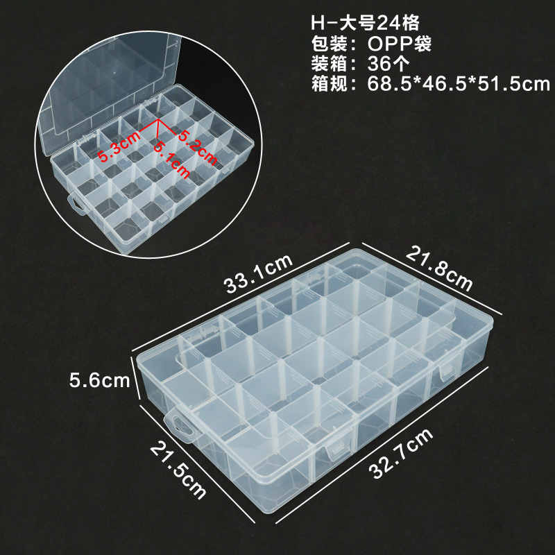 대형 24 그리드 분리형 투명 플라스틱 보관 상자 낚시 장비 구슬 정리 상자 하드웨어 도구 예비 부품 포장 상자