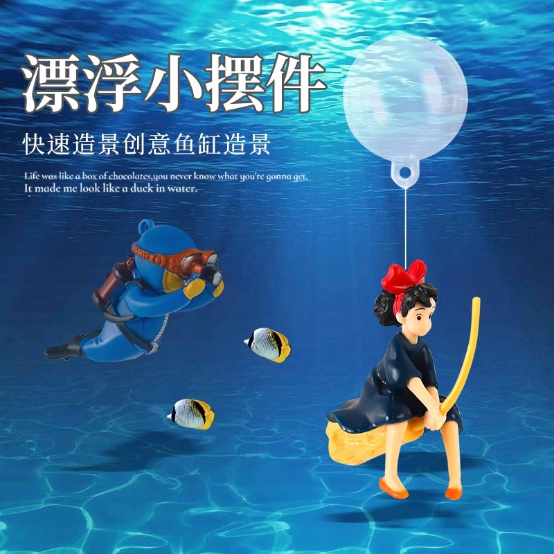 물고기 탱크 풍경 장식 서스펜션 마녀 장식 풀 세트 수족관 떠 있는 요정 세트 달 고양이 잠수부스토어 가기