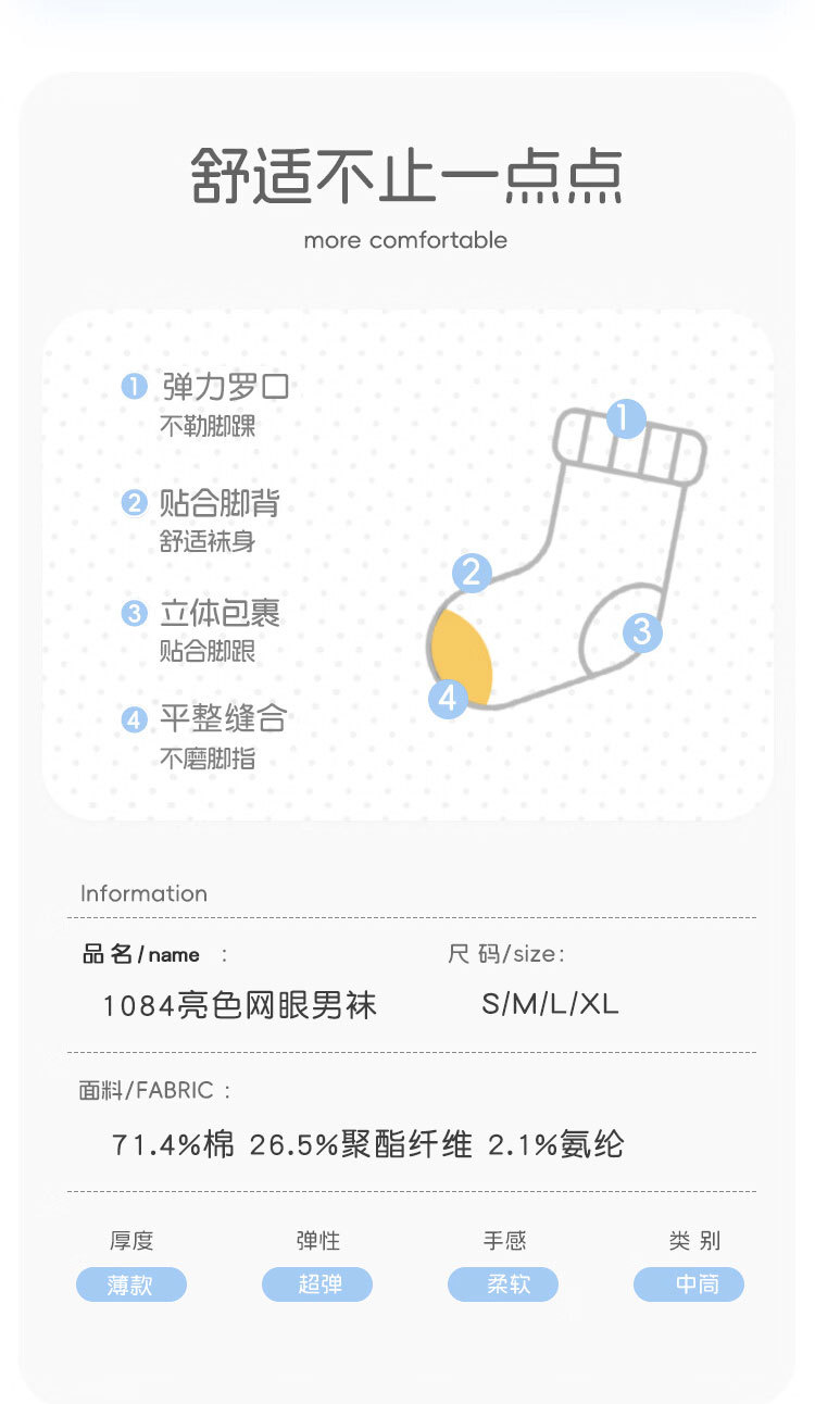 • ML25-1084 밝은 색상의 메쉬 남성용 양말