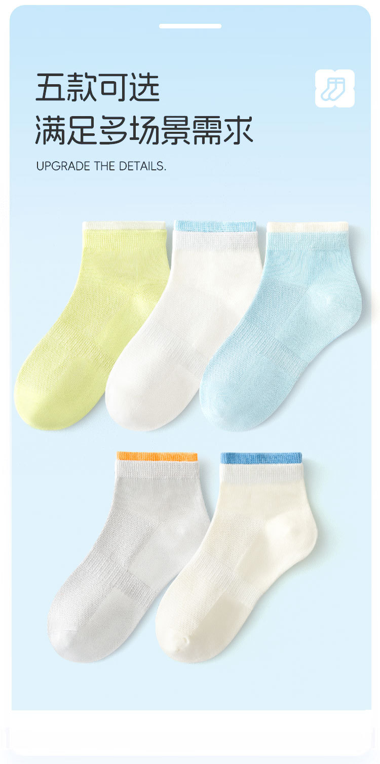 소년 양말 여름 단색 더블 로우 양말 클래스 A 통기성 메쉬 어린이 다용도면 양말 학생 양말 맞춤 제작스토어 가기