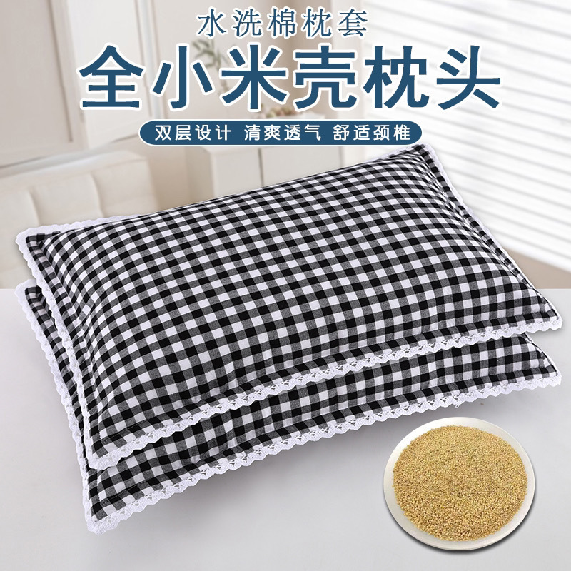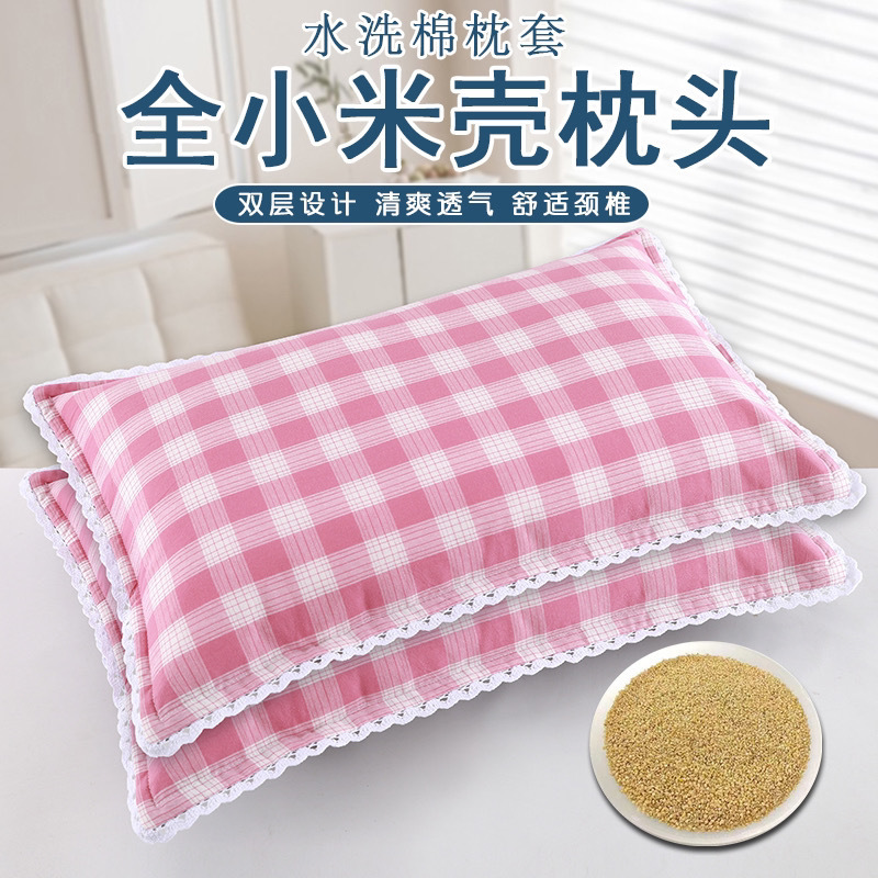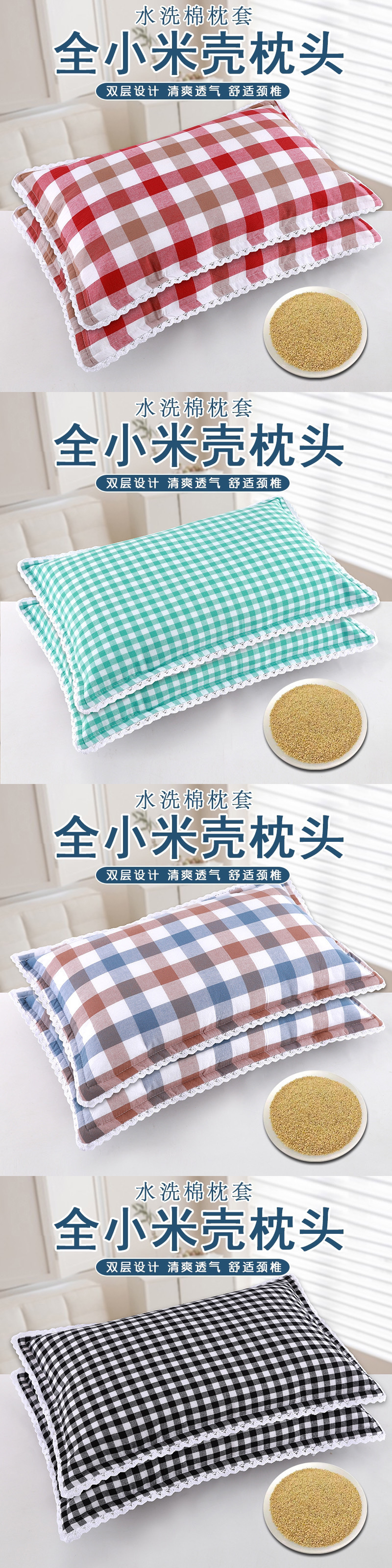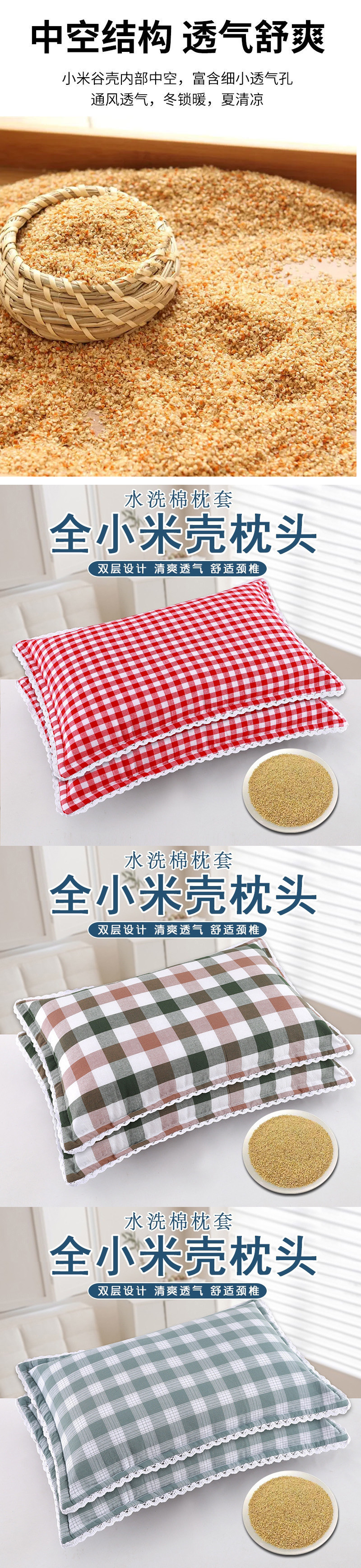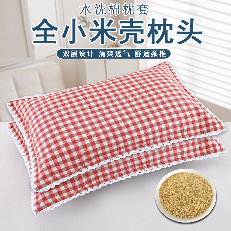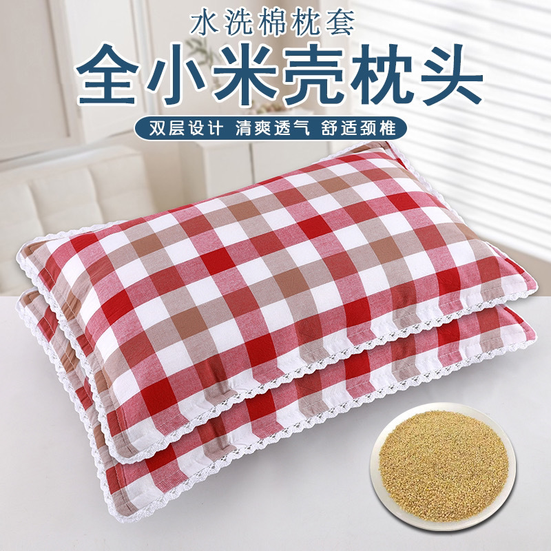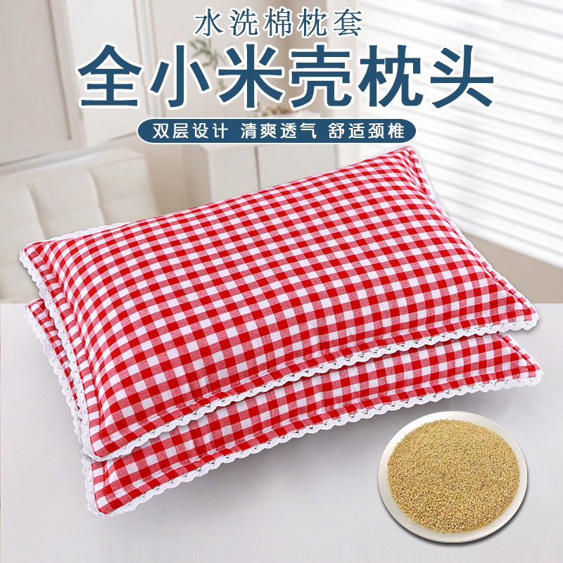 • [편안하고 통기성이 좋음] 작은 빨간 격자 [기장 껍질 베개]