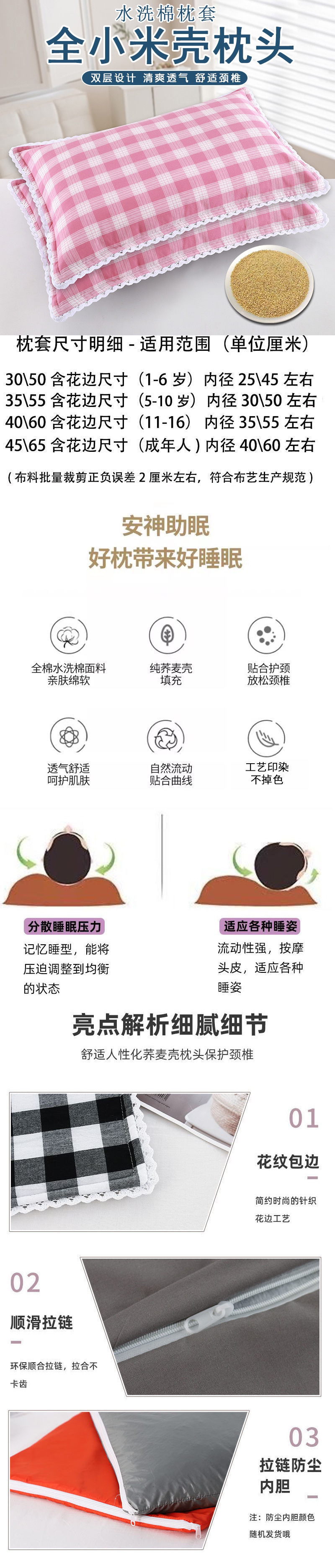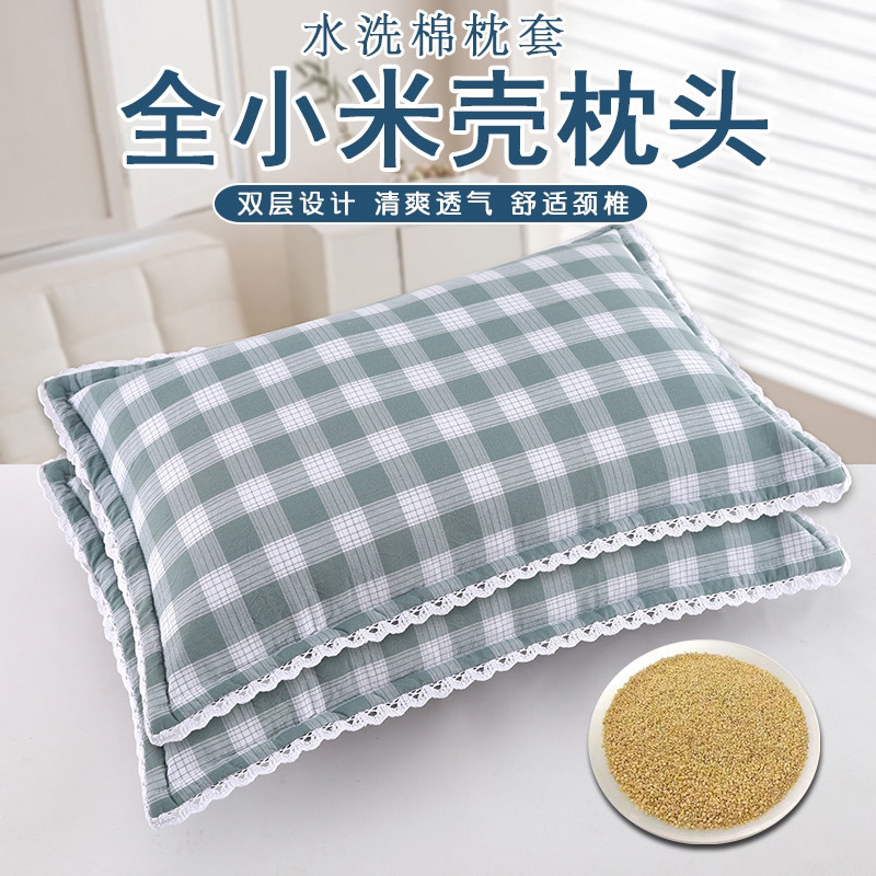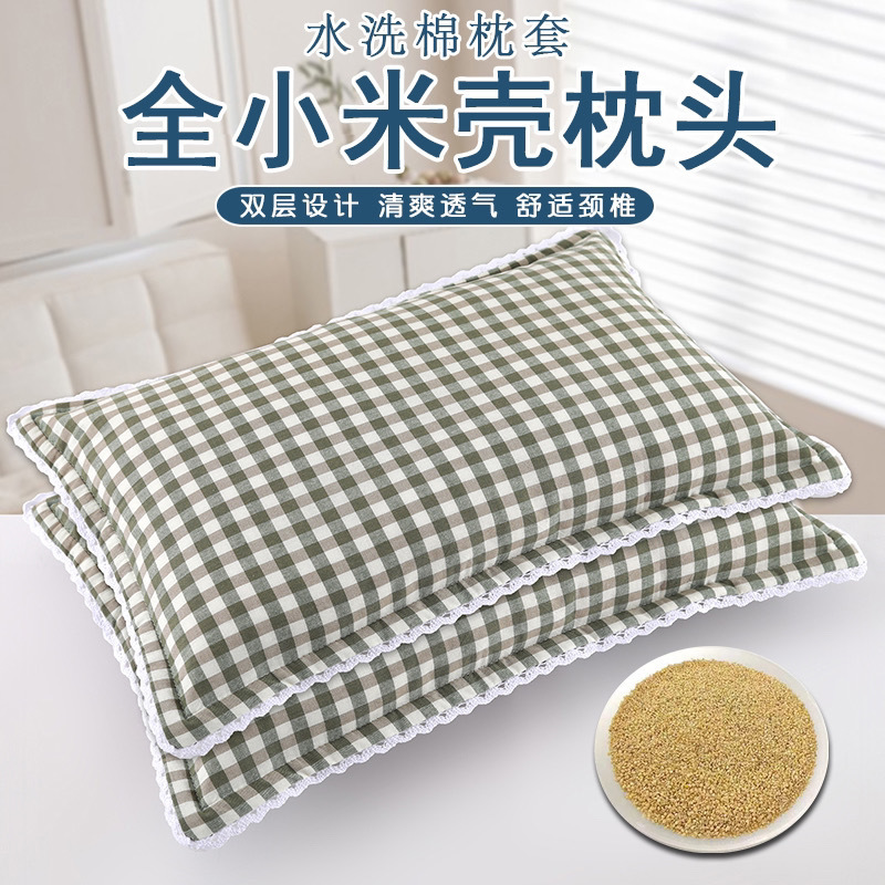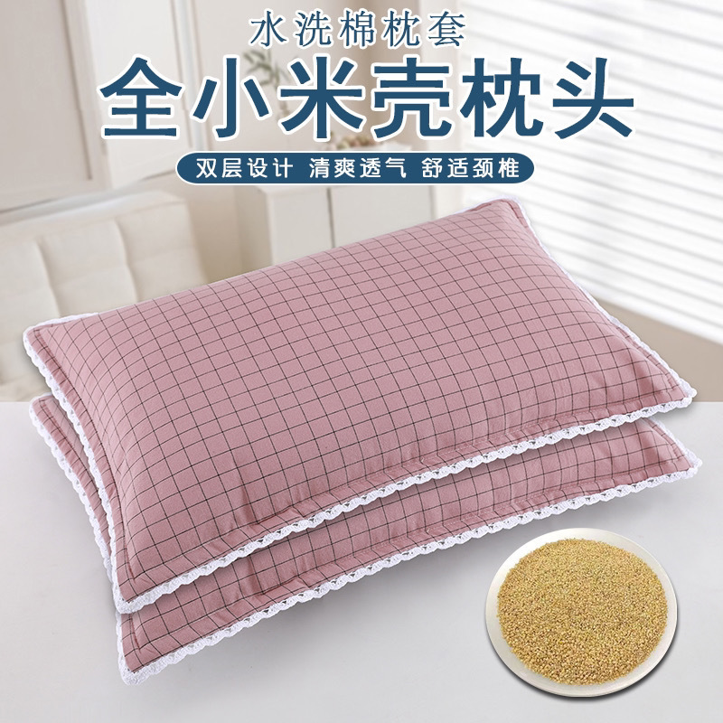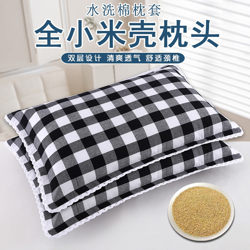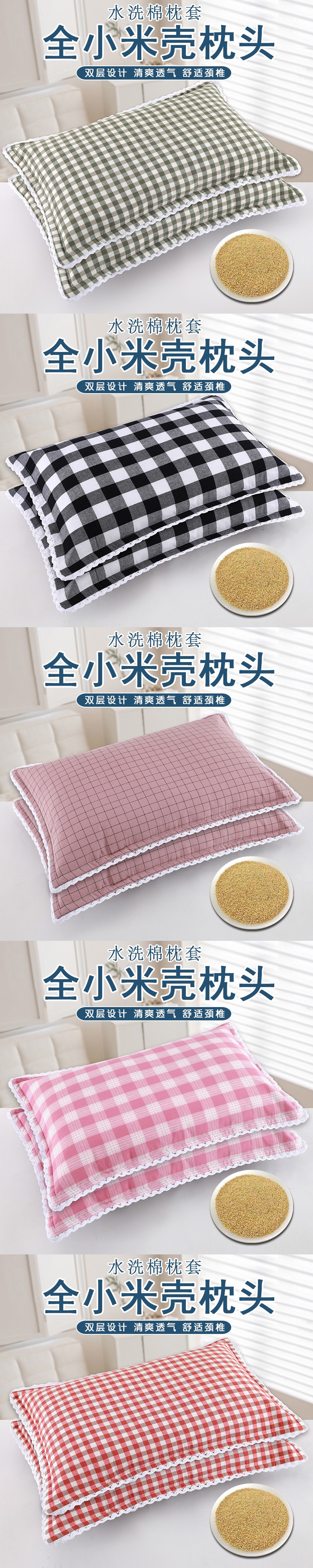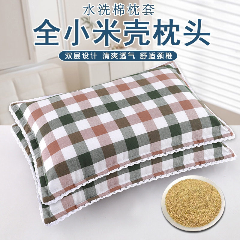 • [편안하고 통기성이 좋음] 작은 빨간 격자 [기장 껍질 베개]