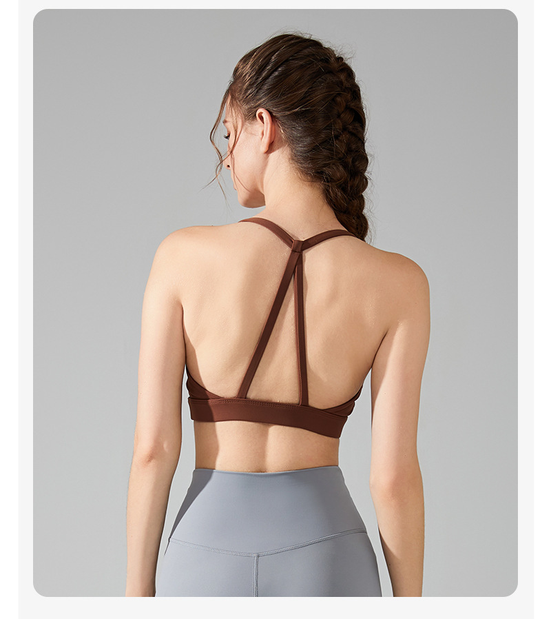 여성용 아름다운 등 스포츠 브라, 스파게티 스트랩, 홀터넥 서스펜더, 누드 브라, 푸쉬업 요가 브라, 피트니스 트레이닝 조끼스토어 가기