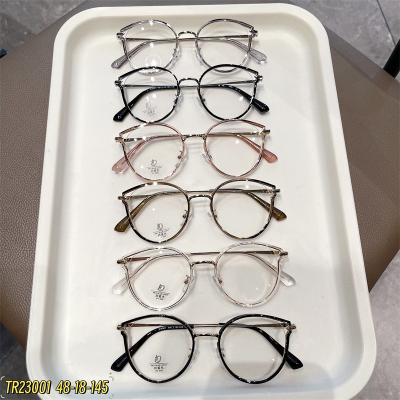 여성을 위한 맞춤형 스타일의 고양이 눈 대형 프레임 청색광 방지 안경, 원형 프레임, 중공, 고급, 처방 근시 프레임과 일치 가능