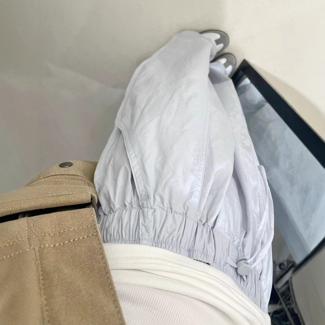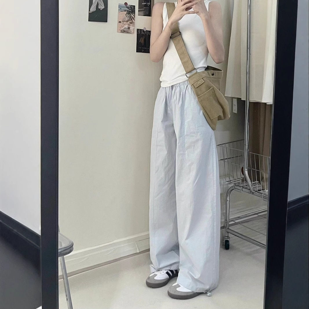 여성용 작업 캐주얼 바지 여성용 라이트 블루 속건성 와이드 레그 팬츠 2025 신상 여름 얇은 충전 바지 신축성있는 허리 길이