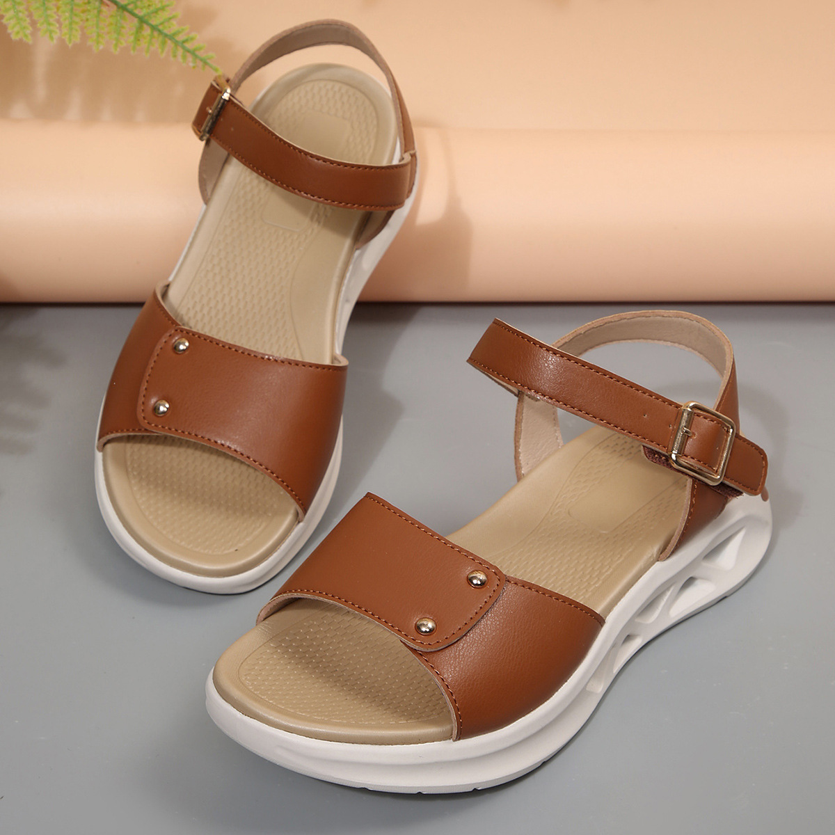 유럽과 미국의 대외 무역 신형 버클 플랫폼 샌들 여성 국경 캐주얼 미드 힐 스포츠 샌들
