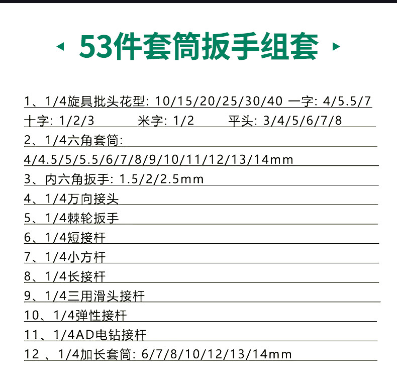 Sanhong 53 조각 소켓 조합 작은 파리 72-치아 래칫 렌치 배치 소켓 자동 수리 24 치아 1/4 소켓 렌치