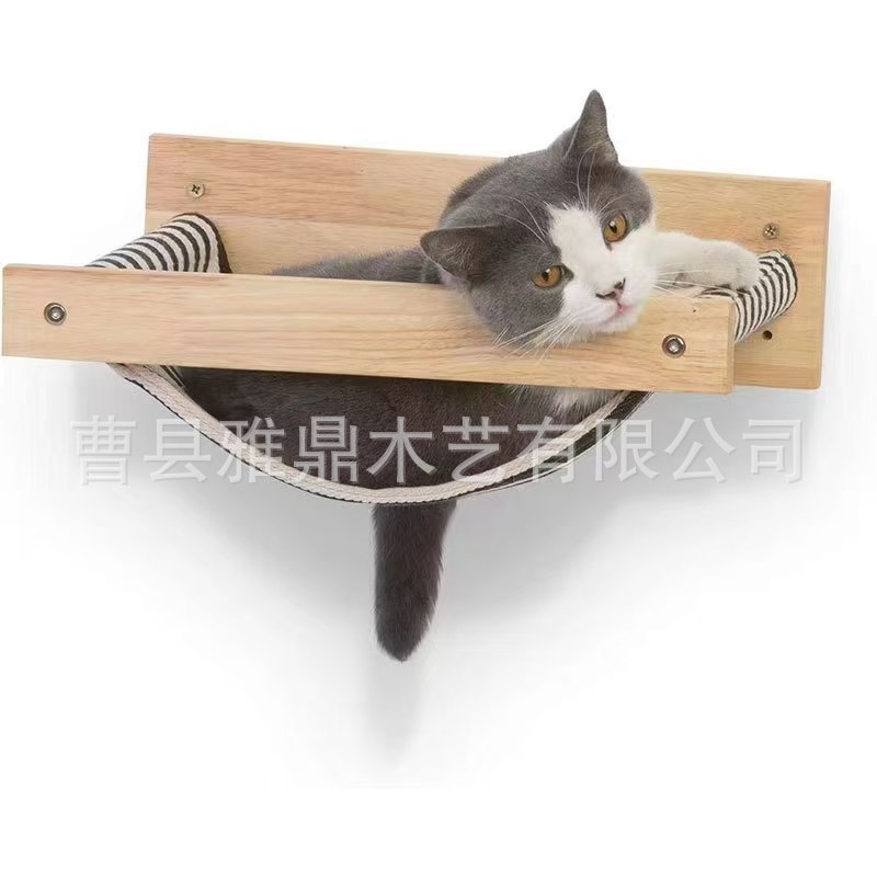 창조적 인 단단한 나무 벽 장착 고양이 둥지 발코니 창 태양 벽 장착 고양이 해먹 공기 고양이 등반 랙