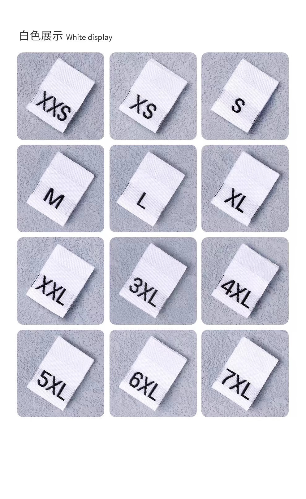 스팟 의류 사이즈 라벨 더블 브로케이드 고밀도 직물 라벨 천 라벨 사이즈 라벨 아동복 번호 번호 라벨 세탁 가능