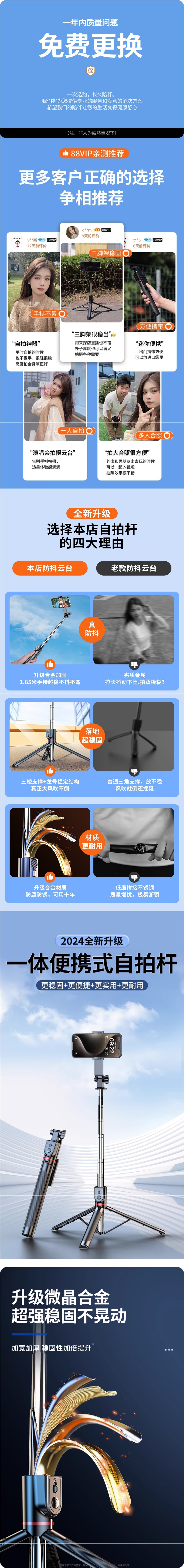 2025 새로운 셀카 스틱 바닥 삼각대 휴대 전화 범용 여행 휴대용 손떨림 방지 사진 라이브 방송 촬영스토어 가기
