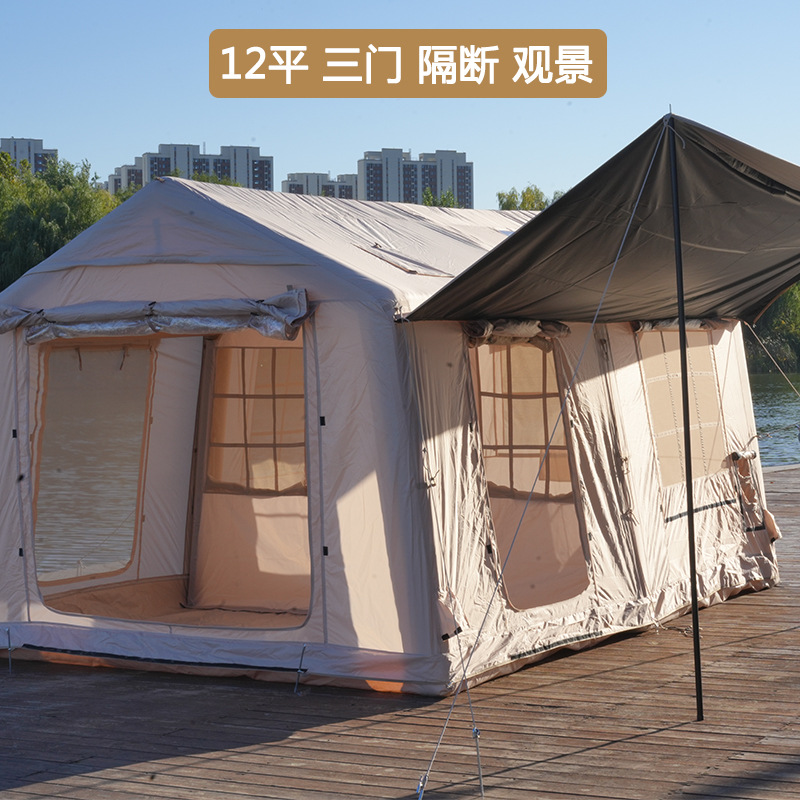 6.3 평면 야외 풍선 텐트 수동 펌핑 4-6 명 캠핑 텐트 설치-무료 휴대용 음영 텐트 단일 도어