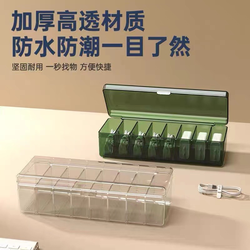 뚜껑이 있는 투명 영수증 코드 보관 상자, 충전기, 전원 코드, 헤드폰 수납 공간, 플라스틱 정리 상자, 데스크탑 방진스토어 가기