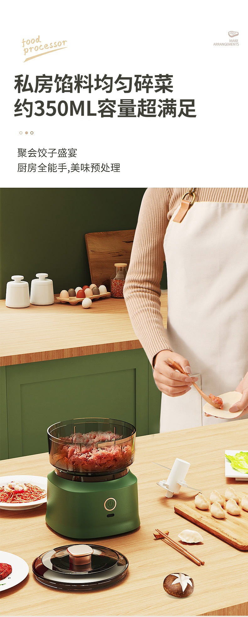 2024 새로운 다기능 요리 기계 무선 전기 고기 분쇄기 홈 주방 마늘 분쇄기 이유식 보충 기계